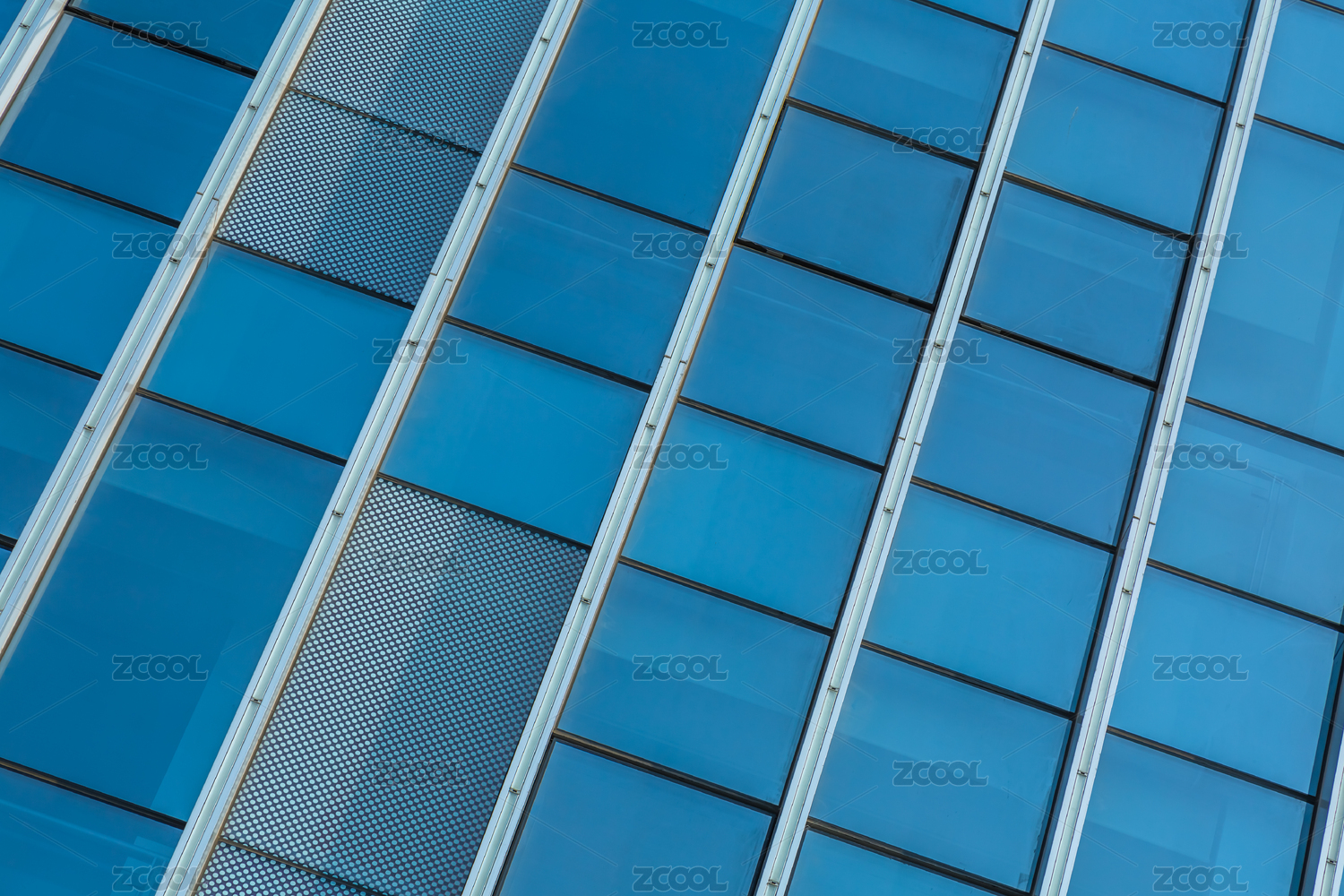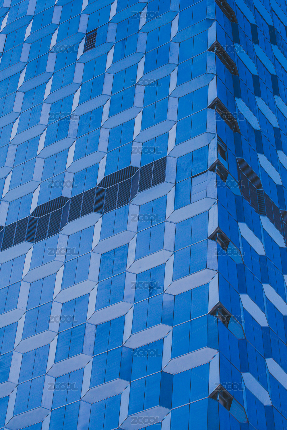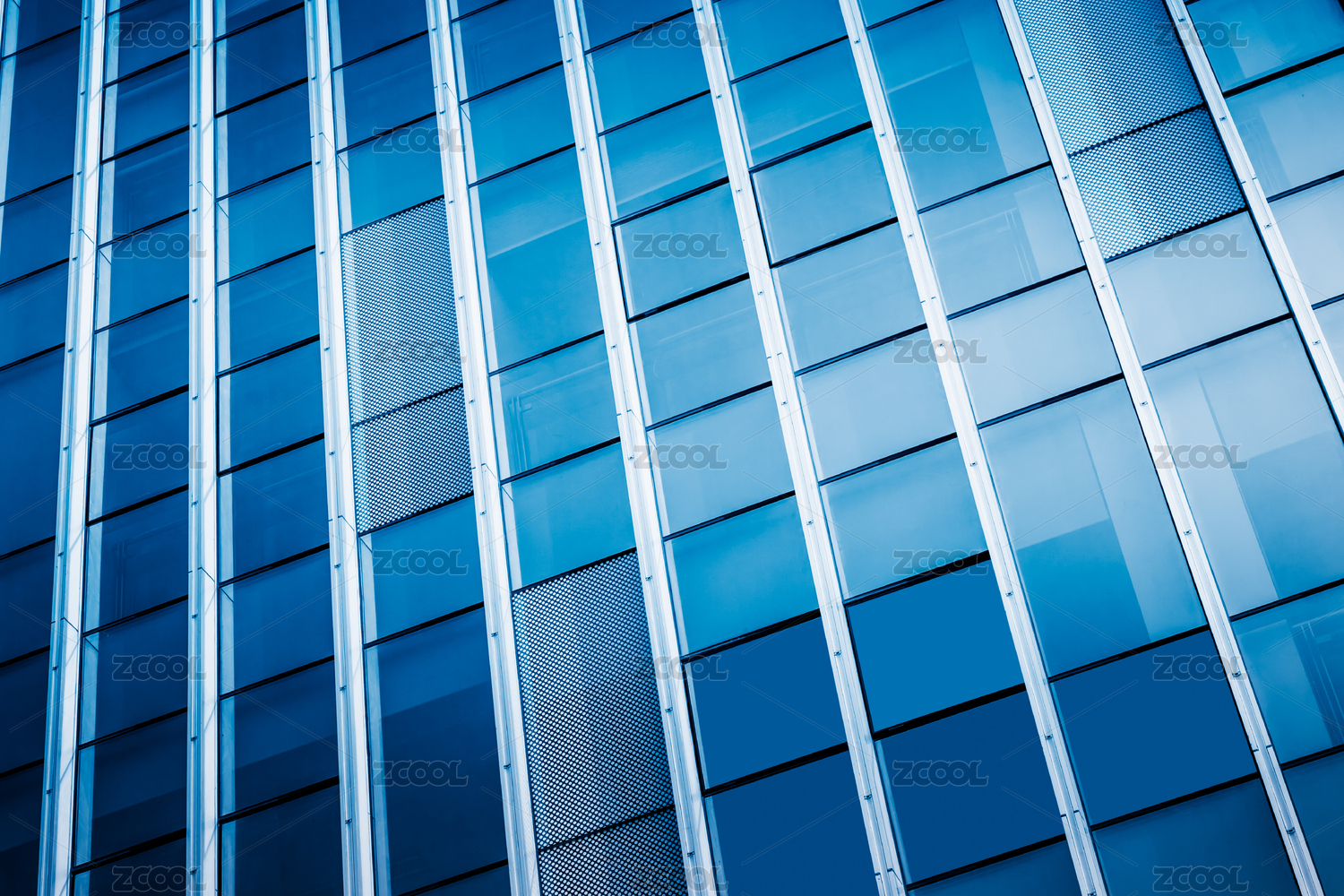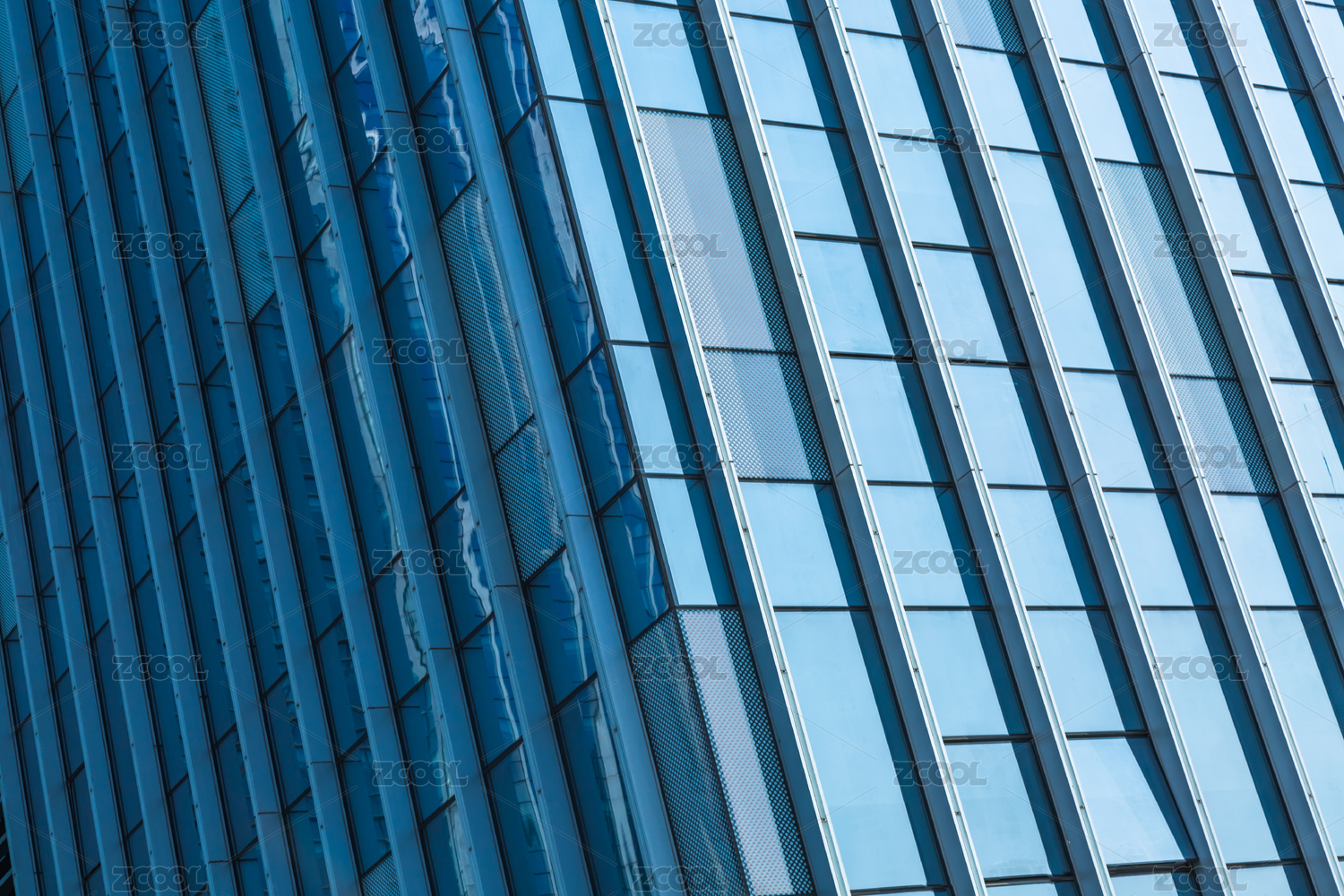 抽象的建筑摩天大楼的蓝色玻璃墙
