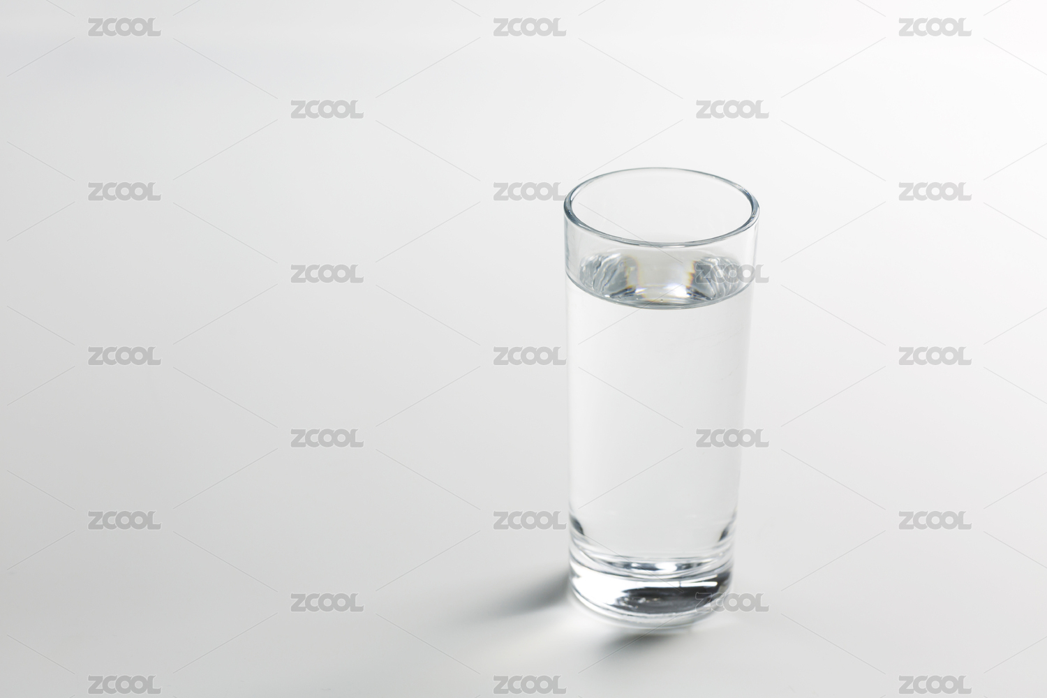 白色背景下玻璃杯乘着白开水