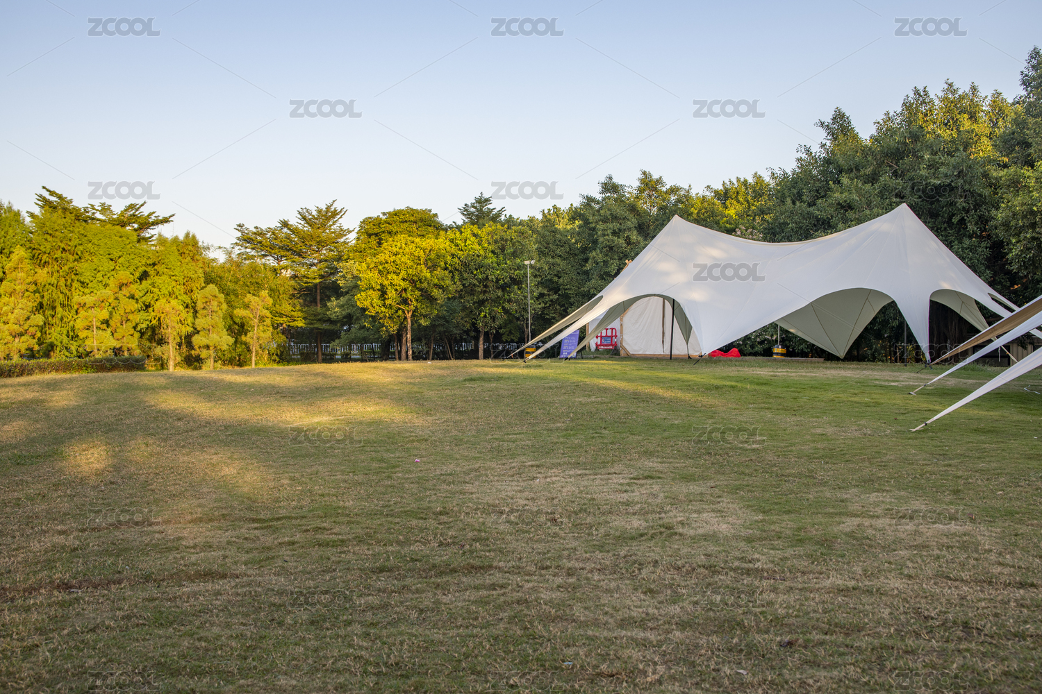 郊外公园草坪上支起的帐篷