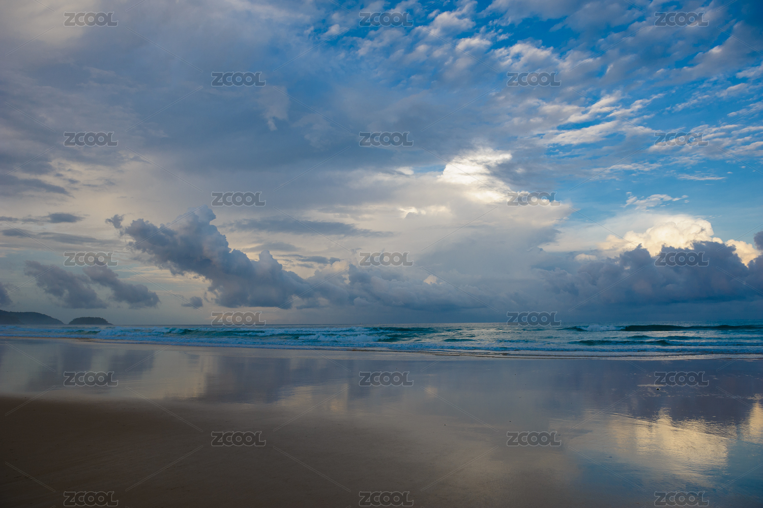 海南博鳌海岸边蓝天白云下的碧波沙滩远景