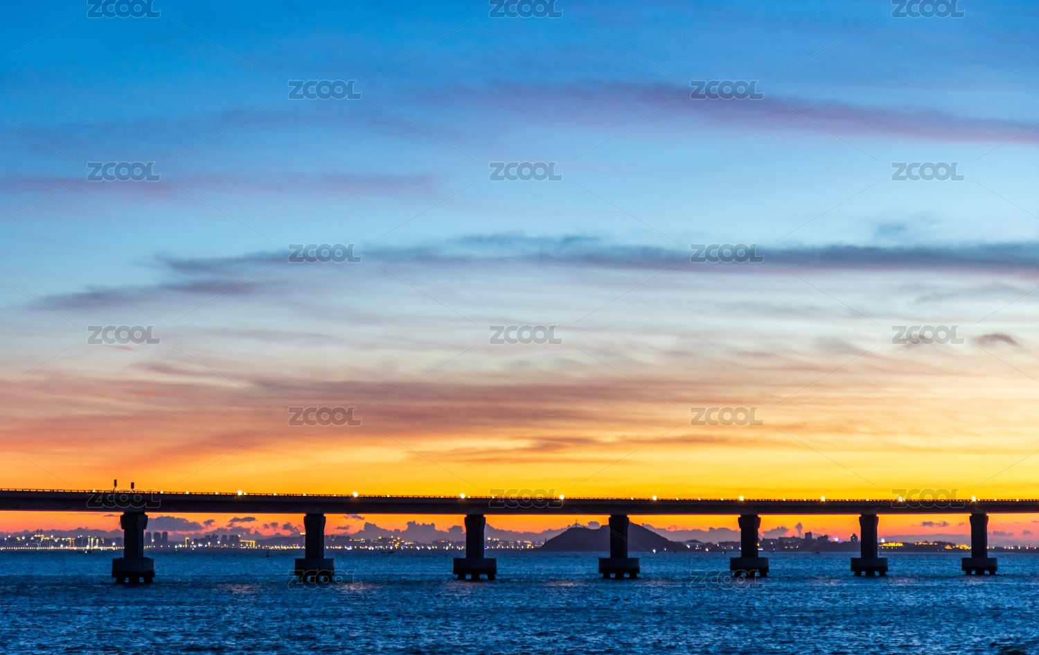 辽宁省大连市星海湾大桥日出前的蓝调时刻,