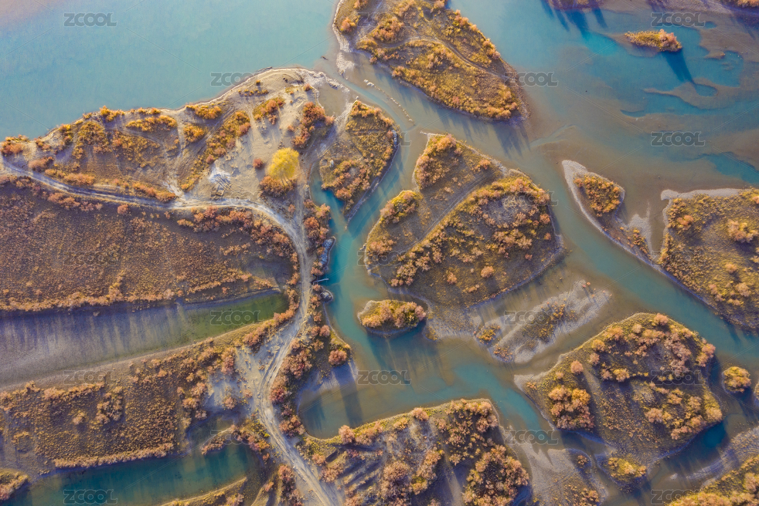 中国新疆喀什塔合曼湿地秋季傍晚航拍