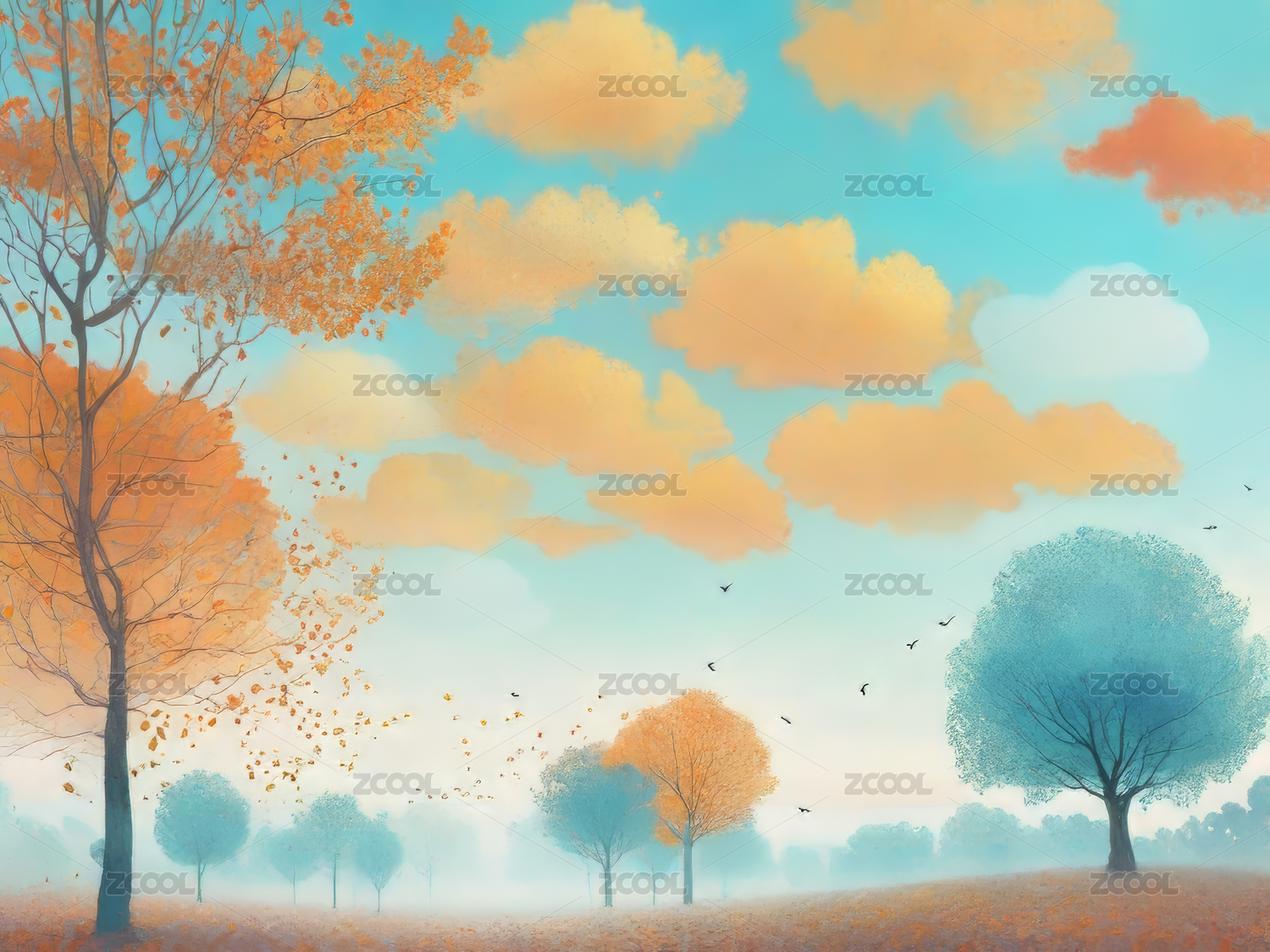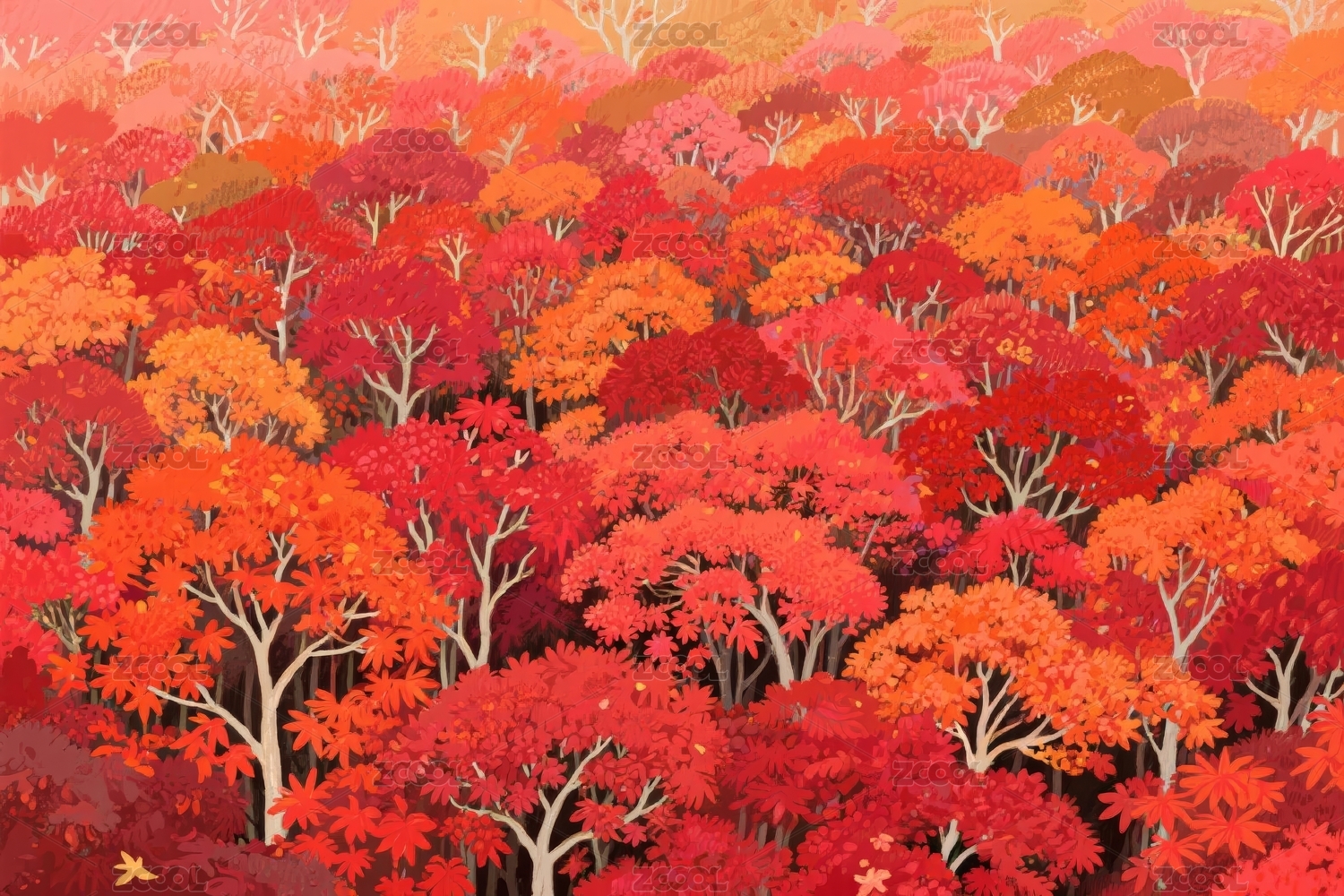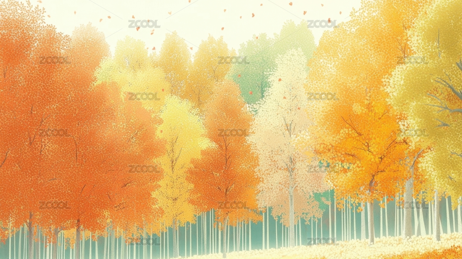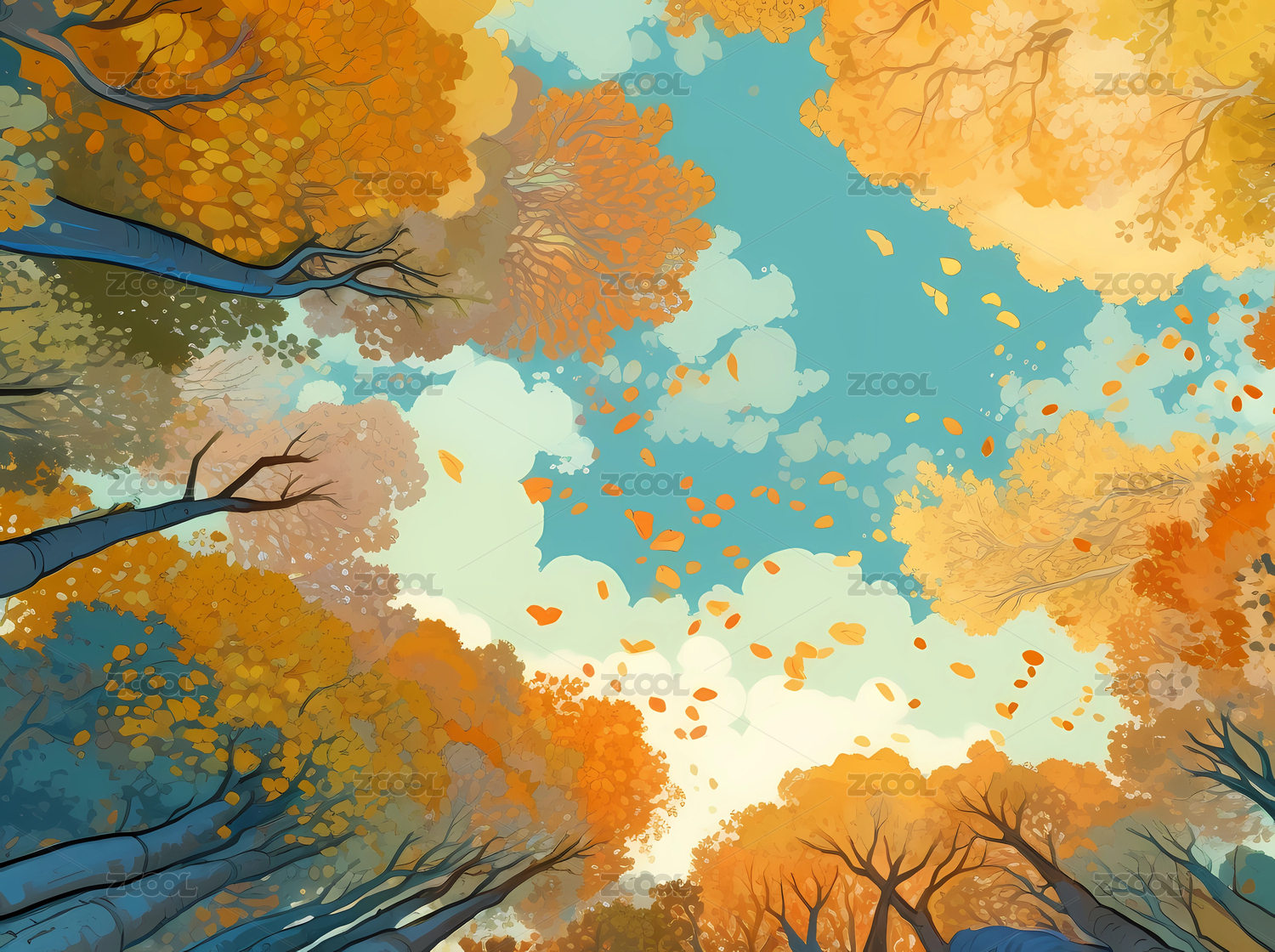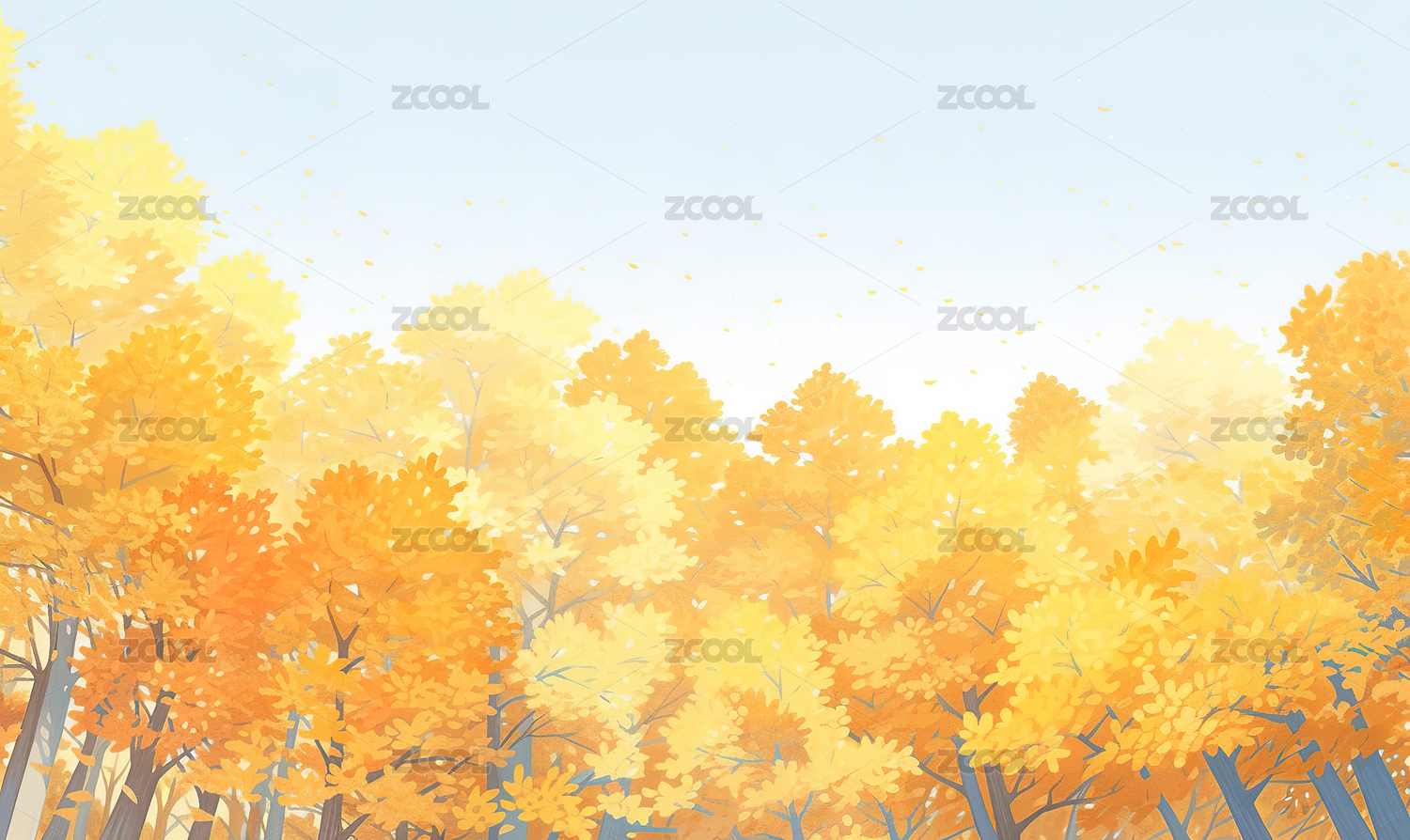 秋天,户外,自然,风景,风光,插画,枫叶,落叶,金黄,金秋