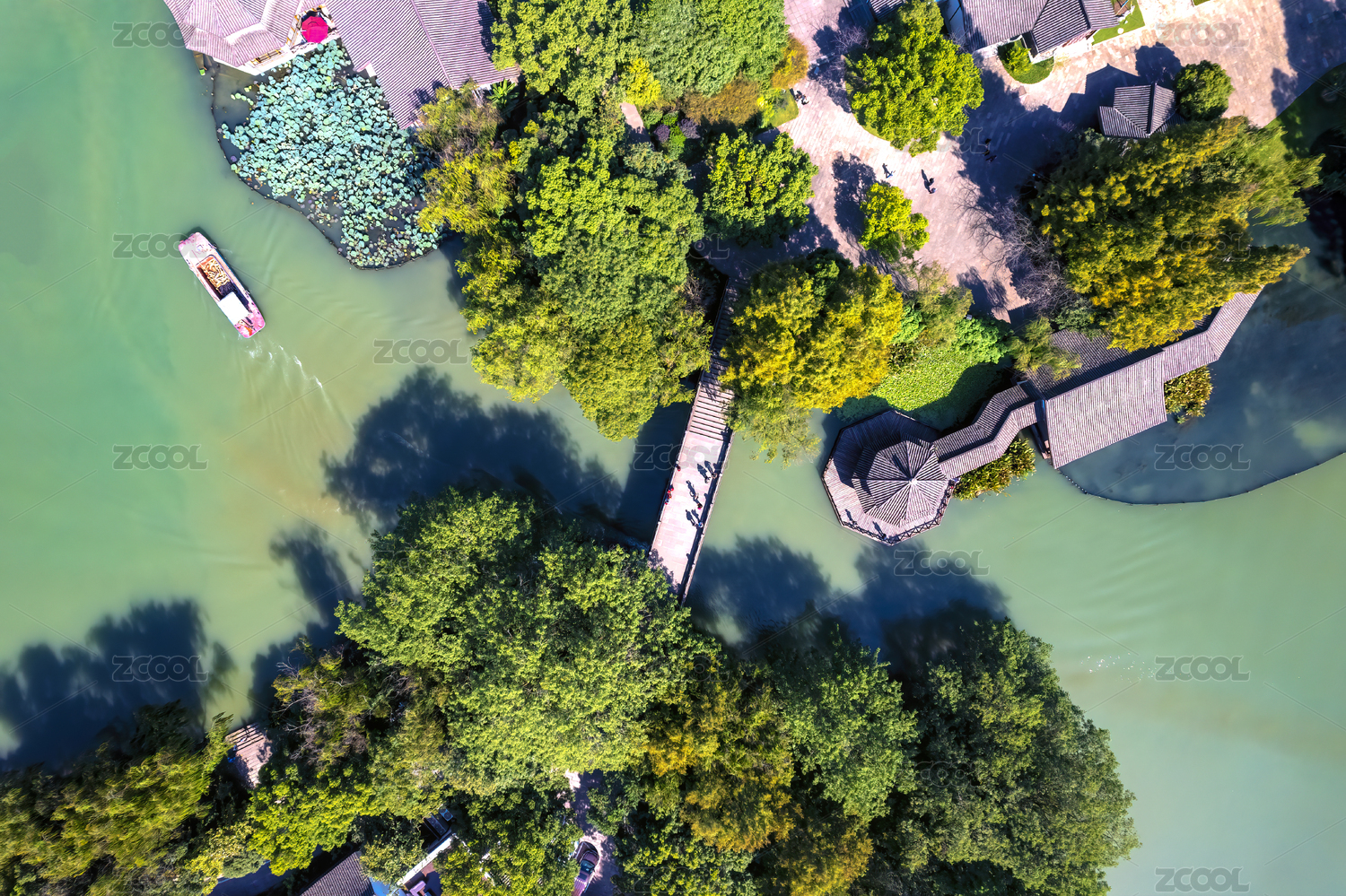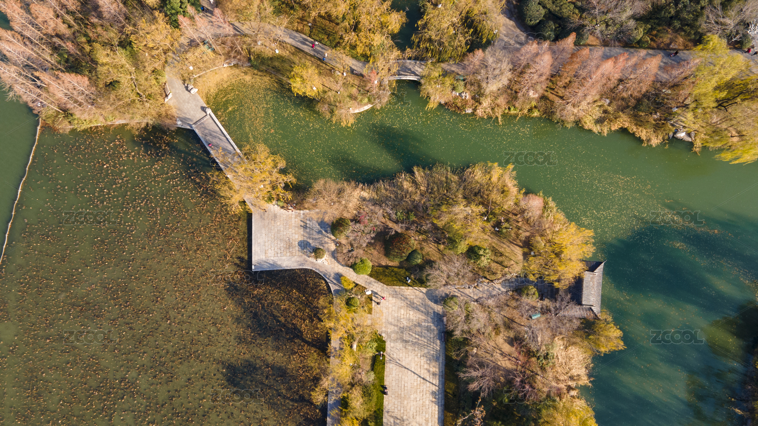 浙江杭州西湖杨公堤清晨日出秋季高空航拍