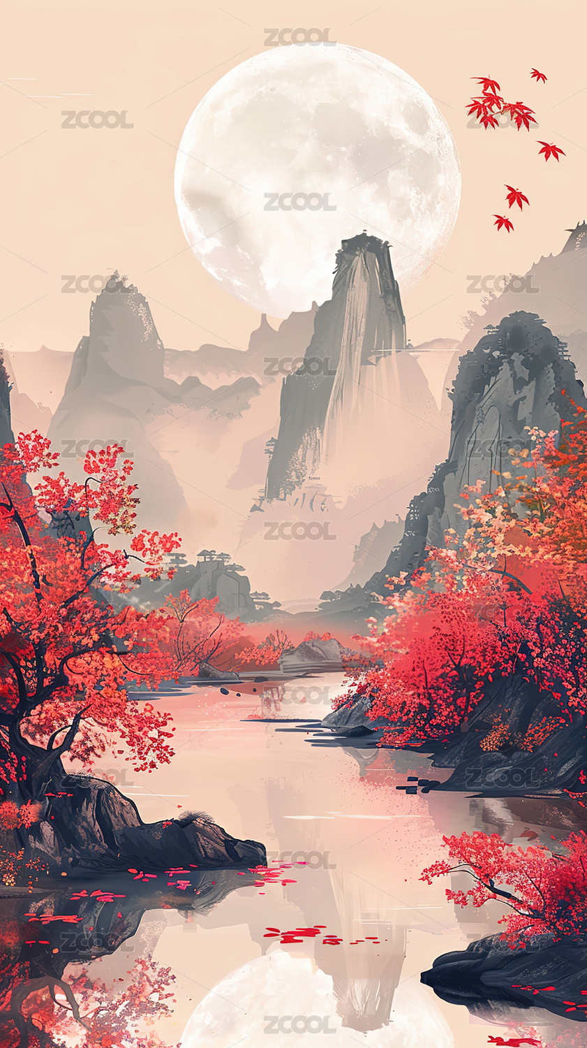 中式中秋节月亮风景