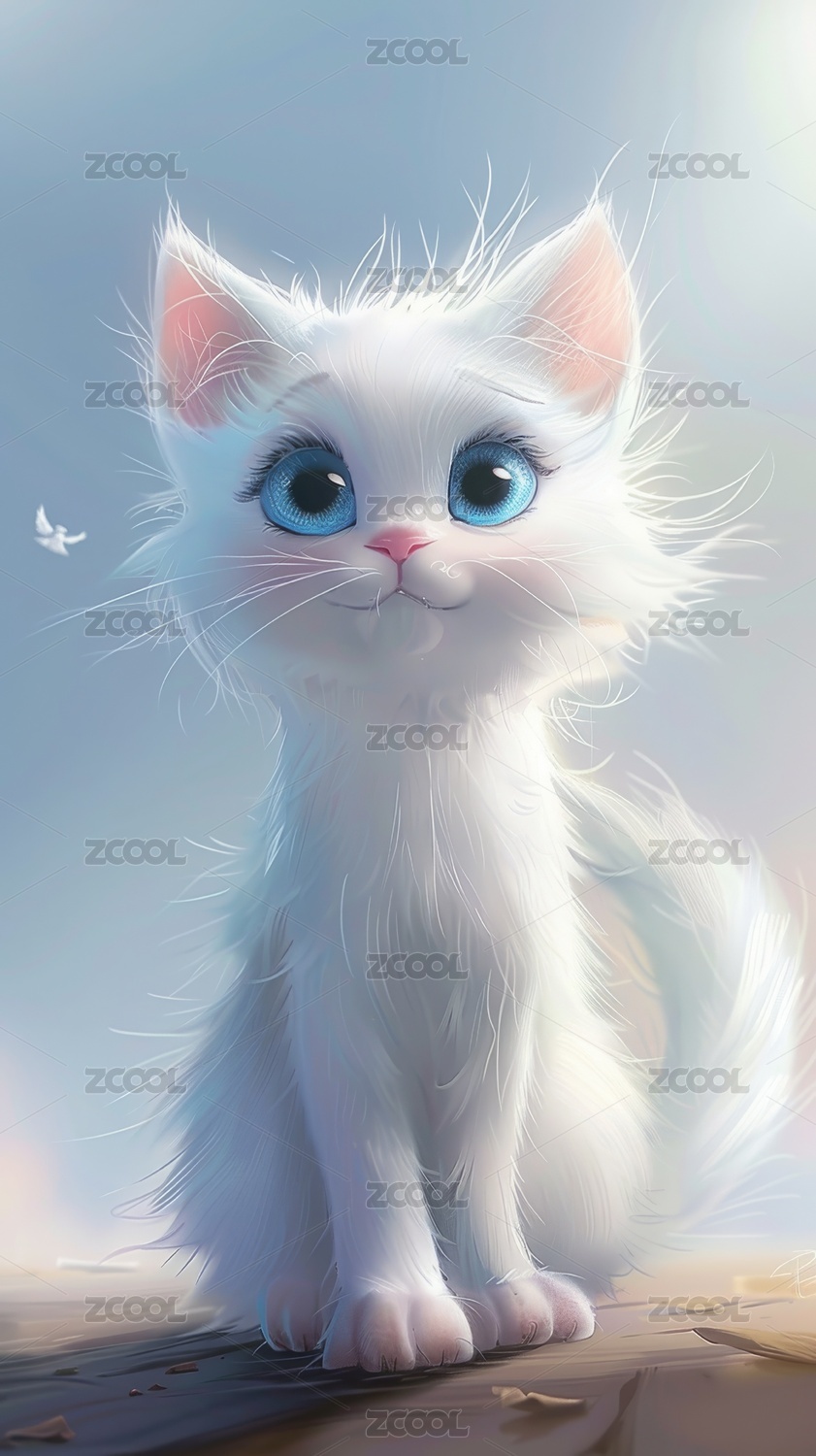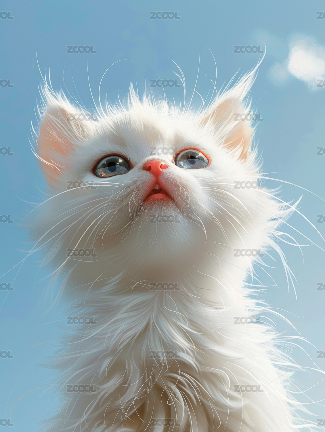 猫,猫咪,白猫,动物,白色,天空,特写,可爱,纯洁,萌