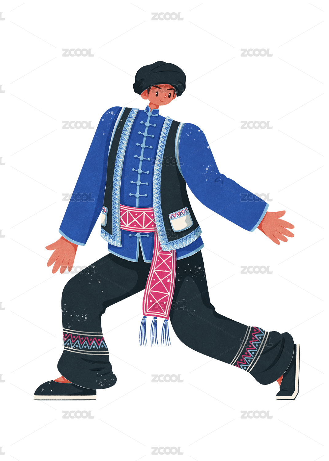 插画,卡通,扁平,少数民族,民族,传统文化,特色,羌族,四川,服饰