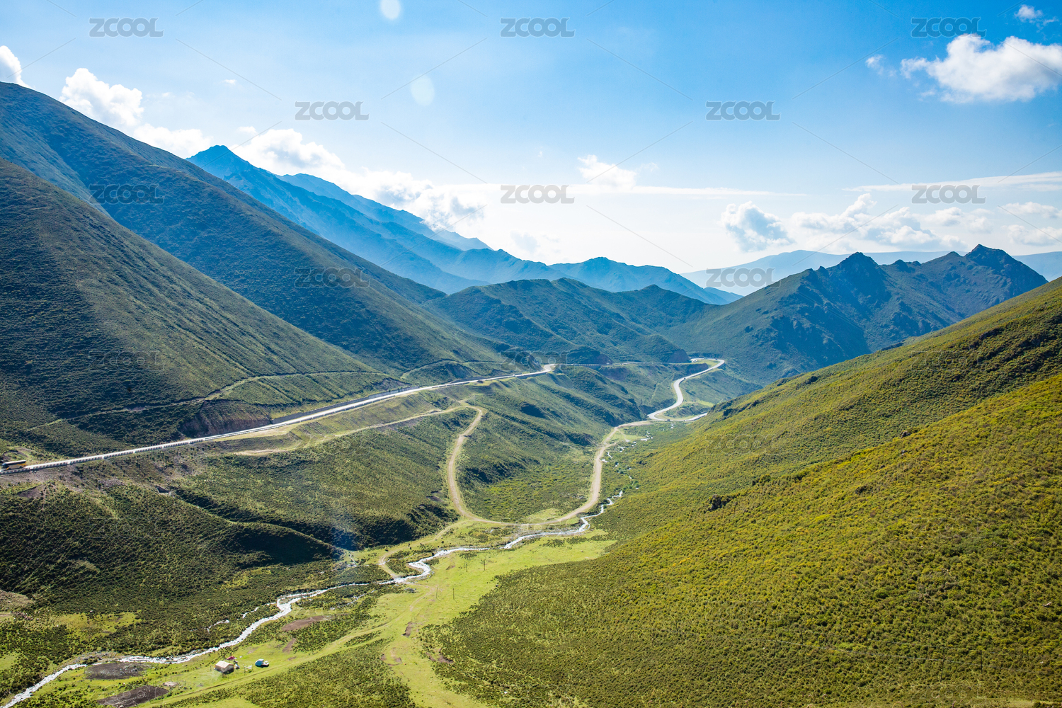 夏天,格聂,山,草原,风景,绿色,花海,草原风光,森林,天空