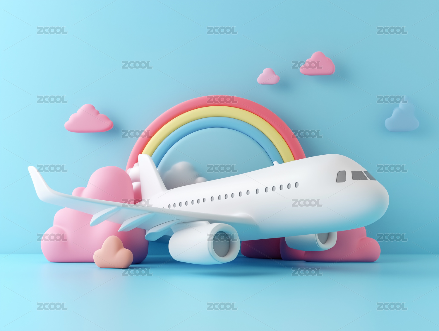 3D,卡通,飞机,客机,机场,旅行,旅游,飞行,起飞