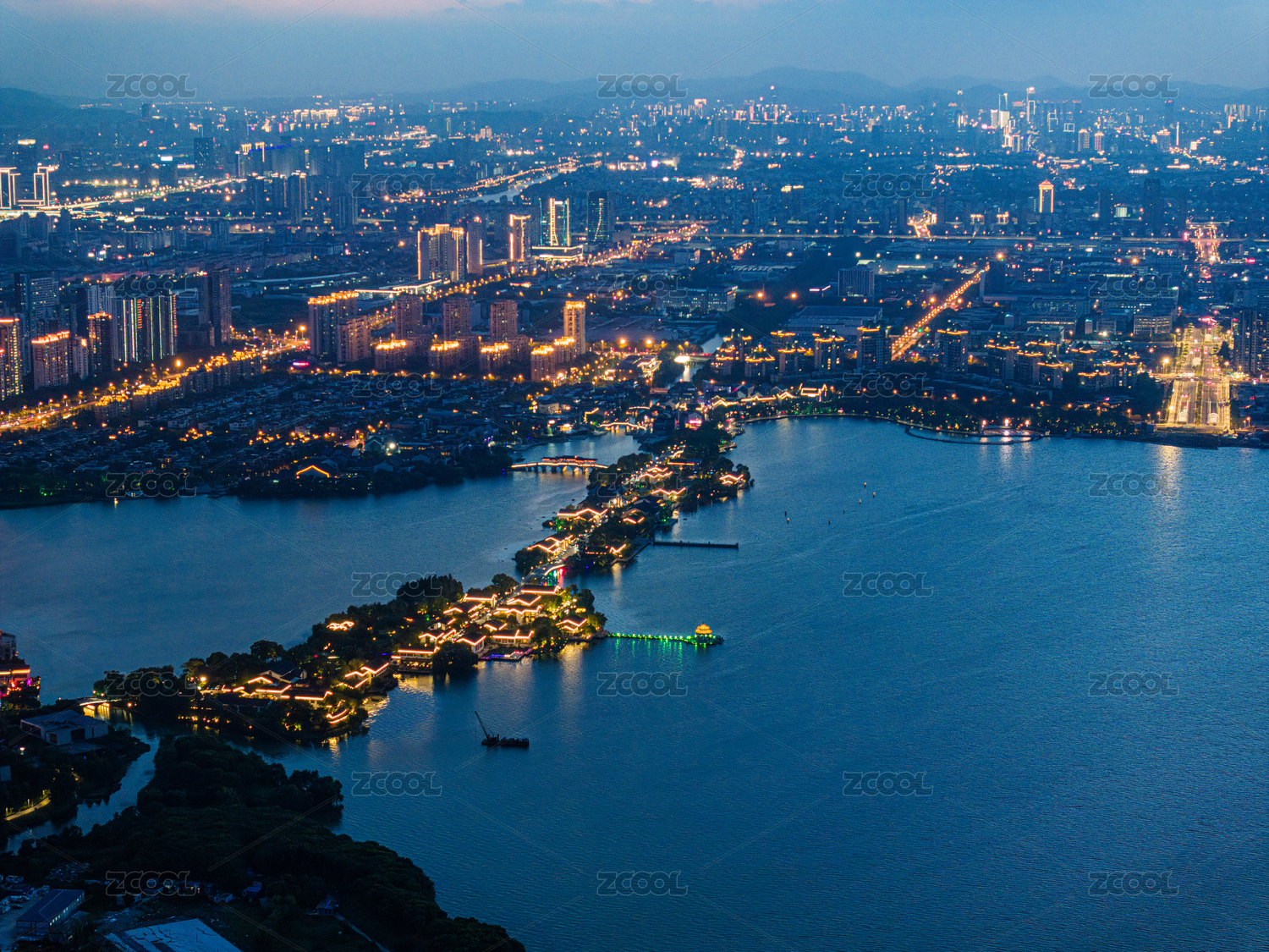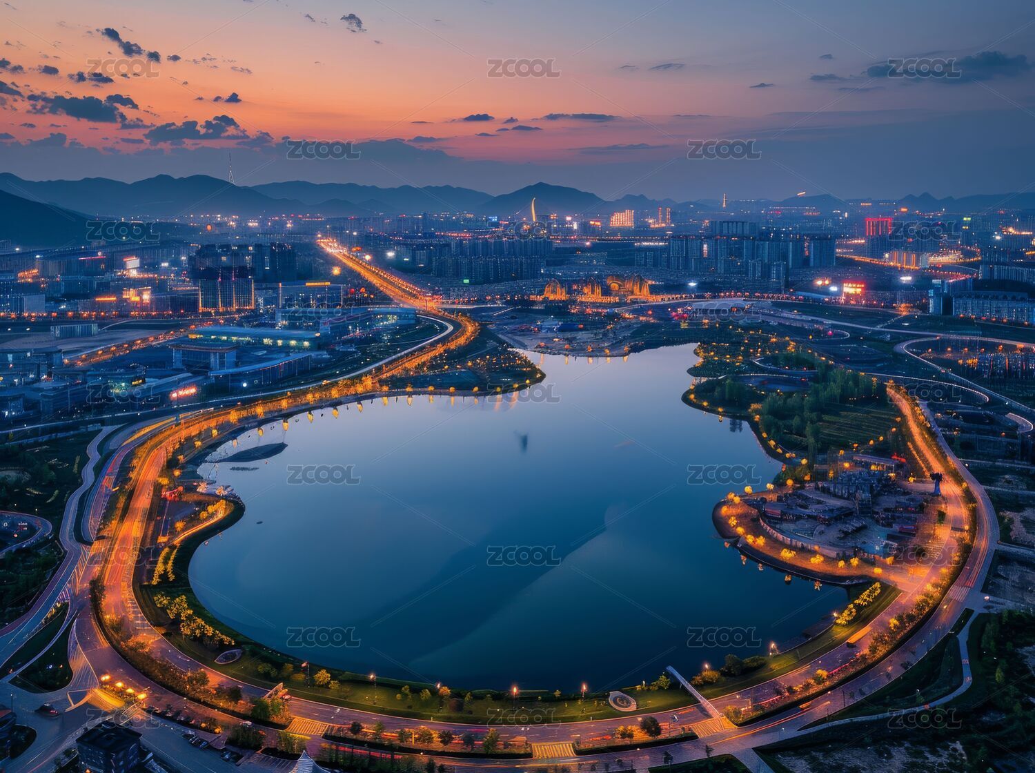 湖泊现代城市建筑大楼繁荣夜景高清广告海报