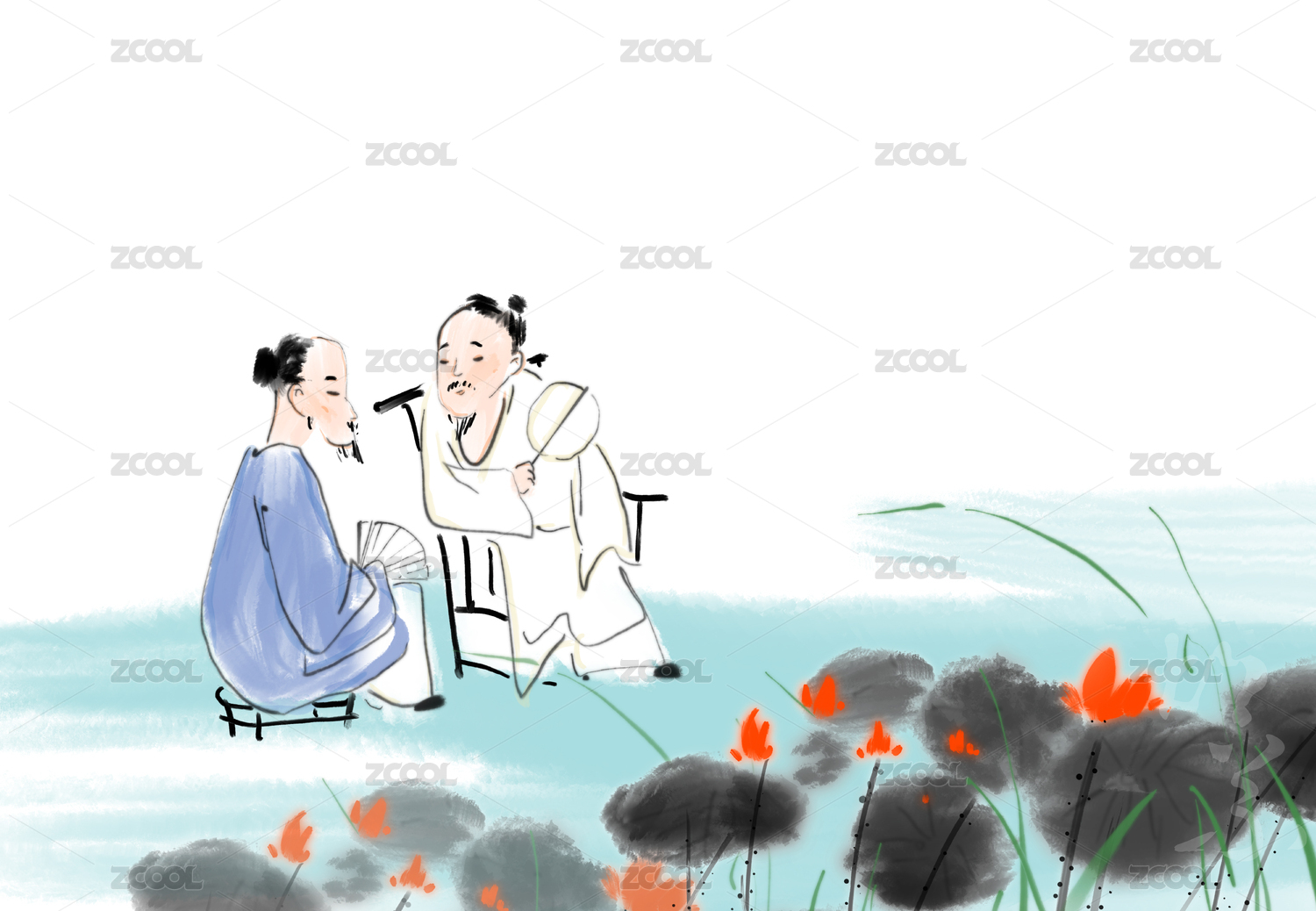 水墨中国画古典诗词插图欣赏荷花的诗人