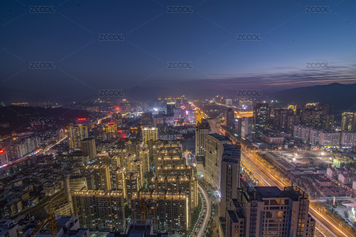 俯看龙岩城区夜景,中国福建龙岩