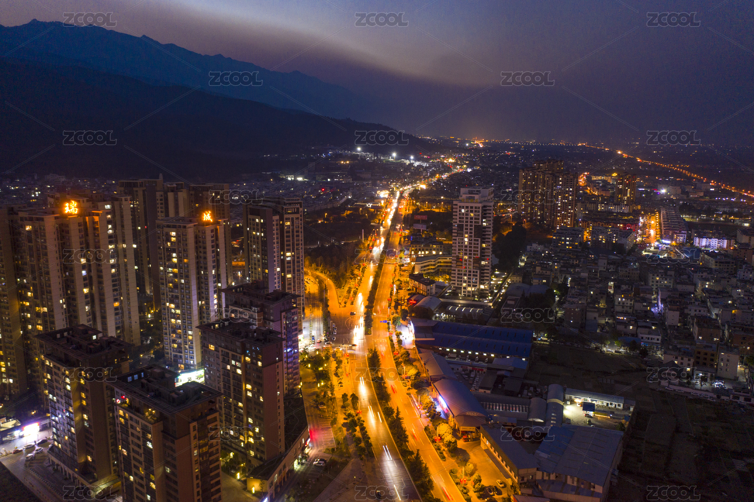 云南省玉溪市夜晚城区高楼大厦建筑