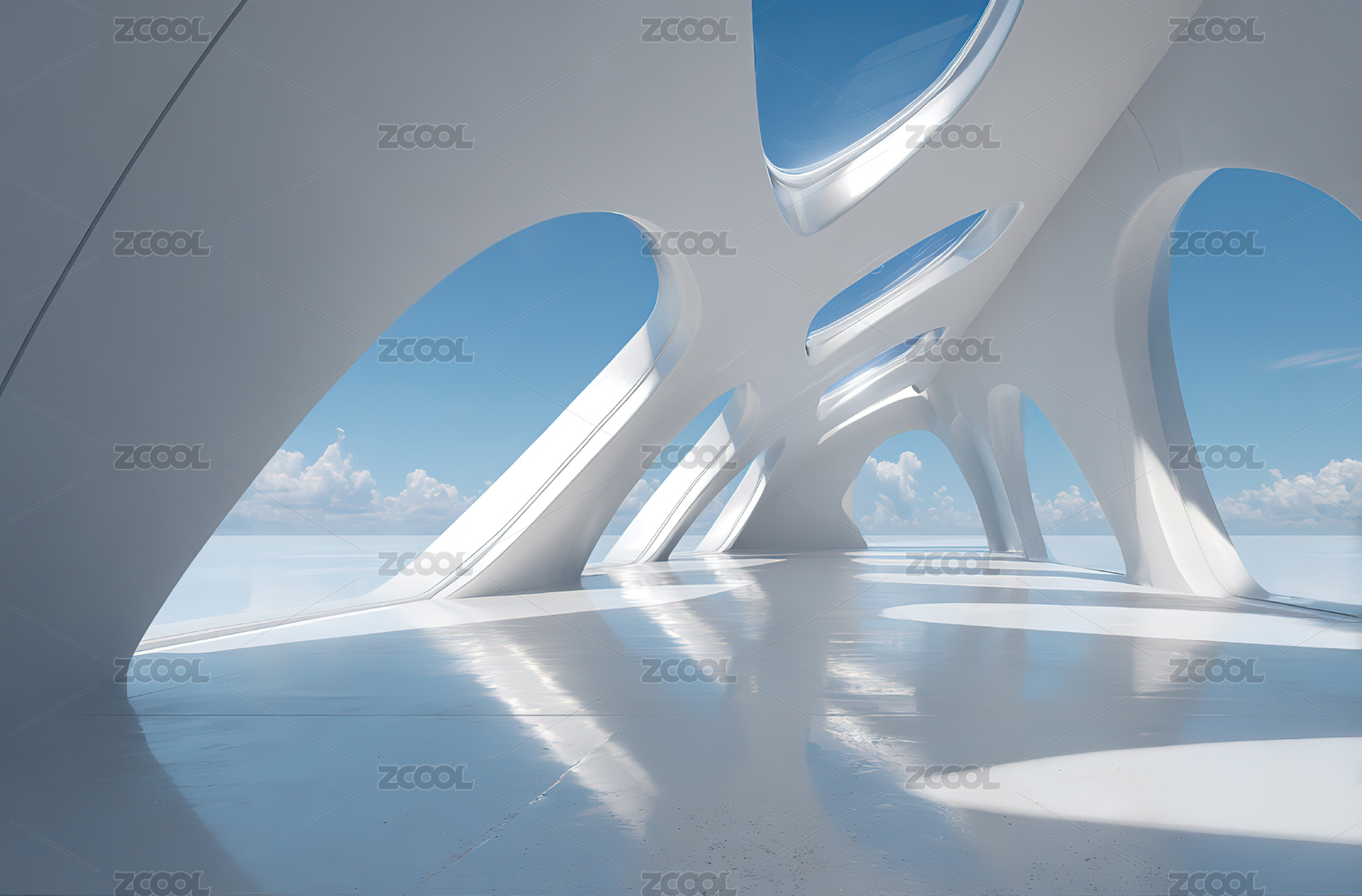 白色,墙壁,地板,光滑质感,白色柱子,弧形结构,柱子,地面,天花板,背景