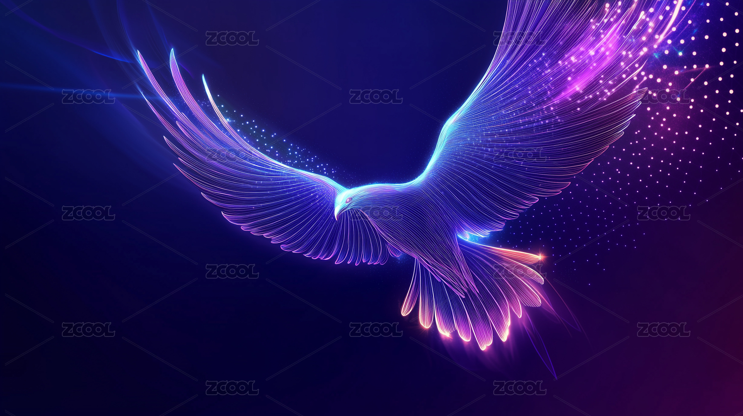 线条,光点构成,飞翔,鸟,翅膀,波浪状,羽毛,结构,深蓝色,背景