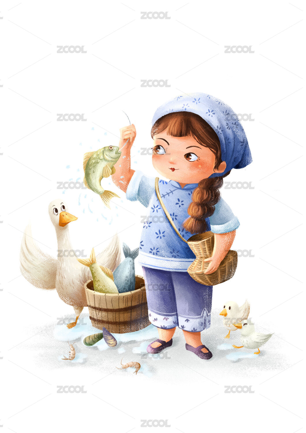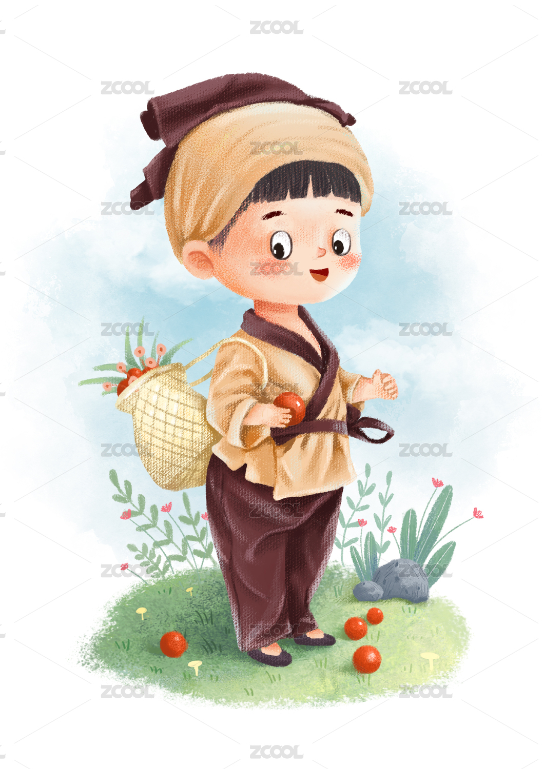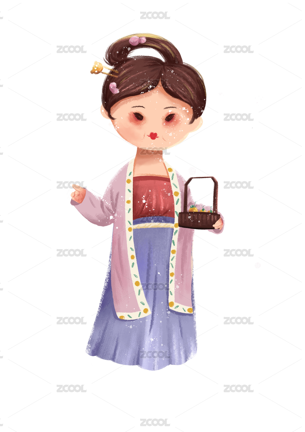 丸子头可爱小女孩马褂唐装国风胡萝卜