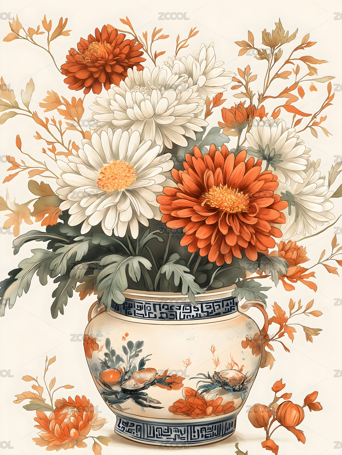 传统风格菊花插画