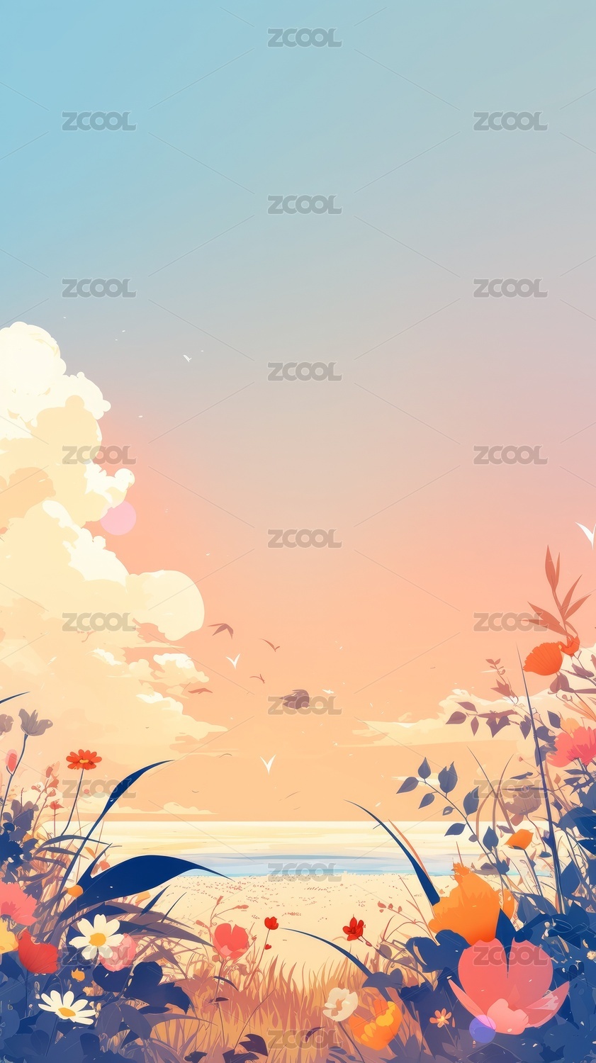 彩色蝴蝶结云彩花朵可爱儿童抽象海报背景