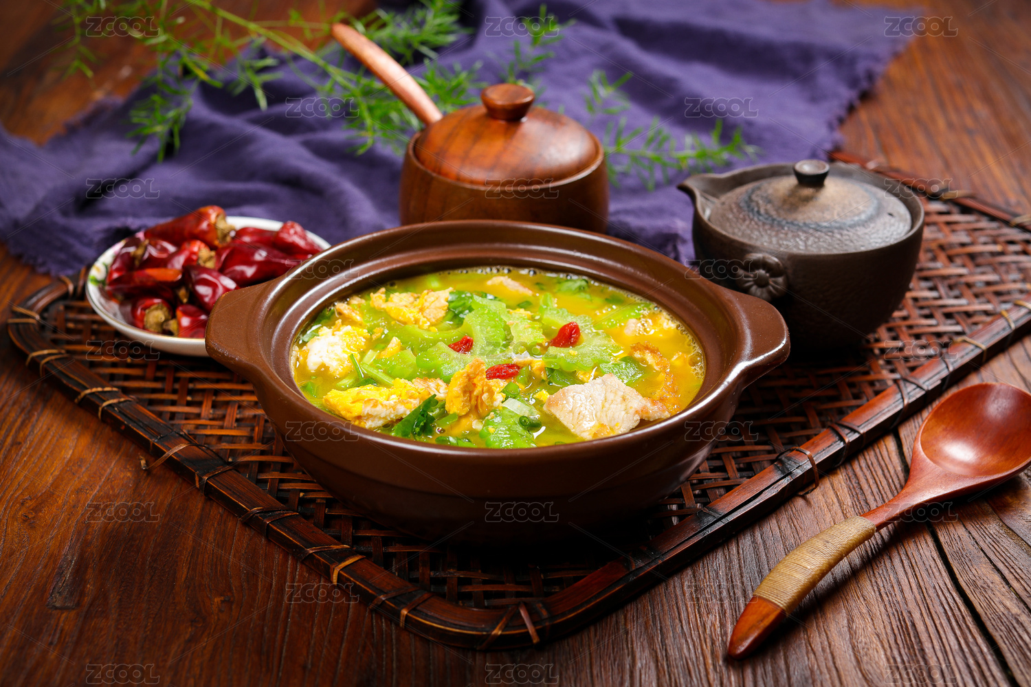 特色农家汤菜美食肉片鸡蛋苦瓜汤