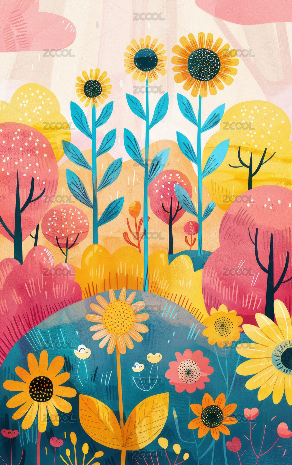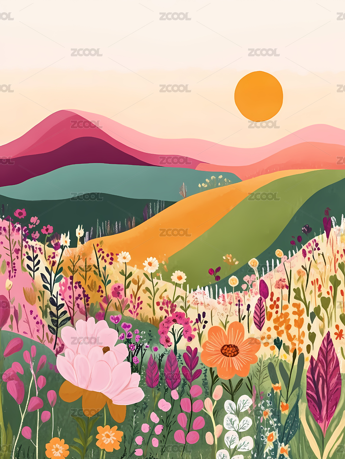 创意鲜花花卉图案插画