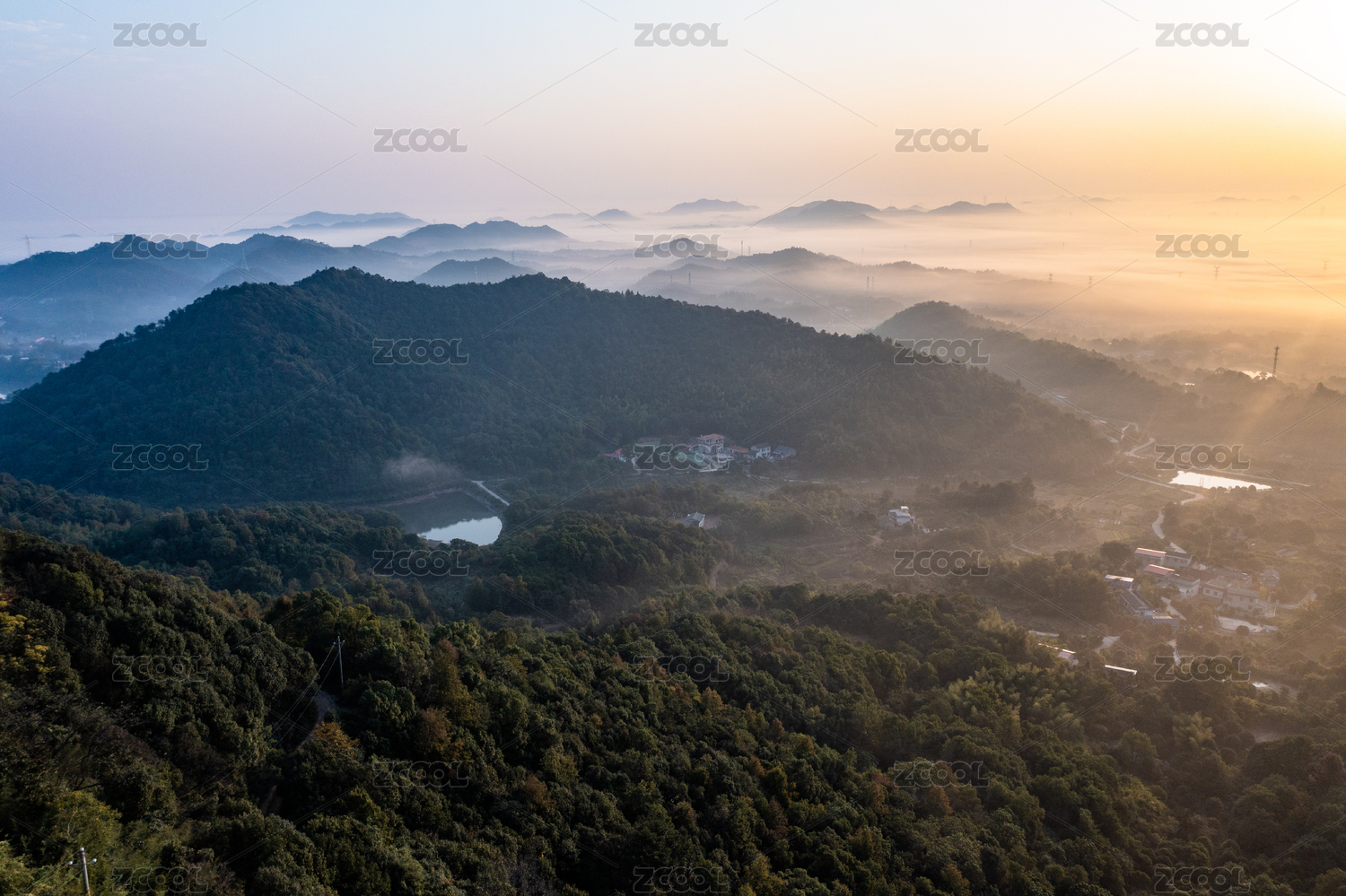 航拍湖南长沙泉水冲森林公园日出和乡村景观