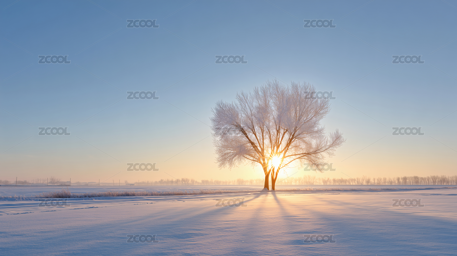 冬季中国乌兰布统坝上草原清晨日出雪景