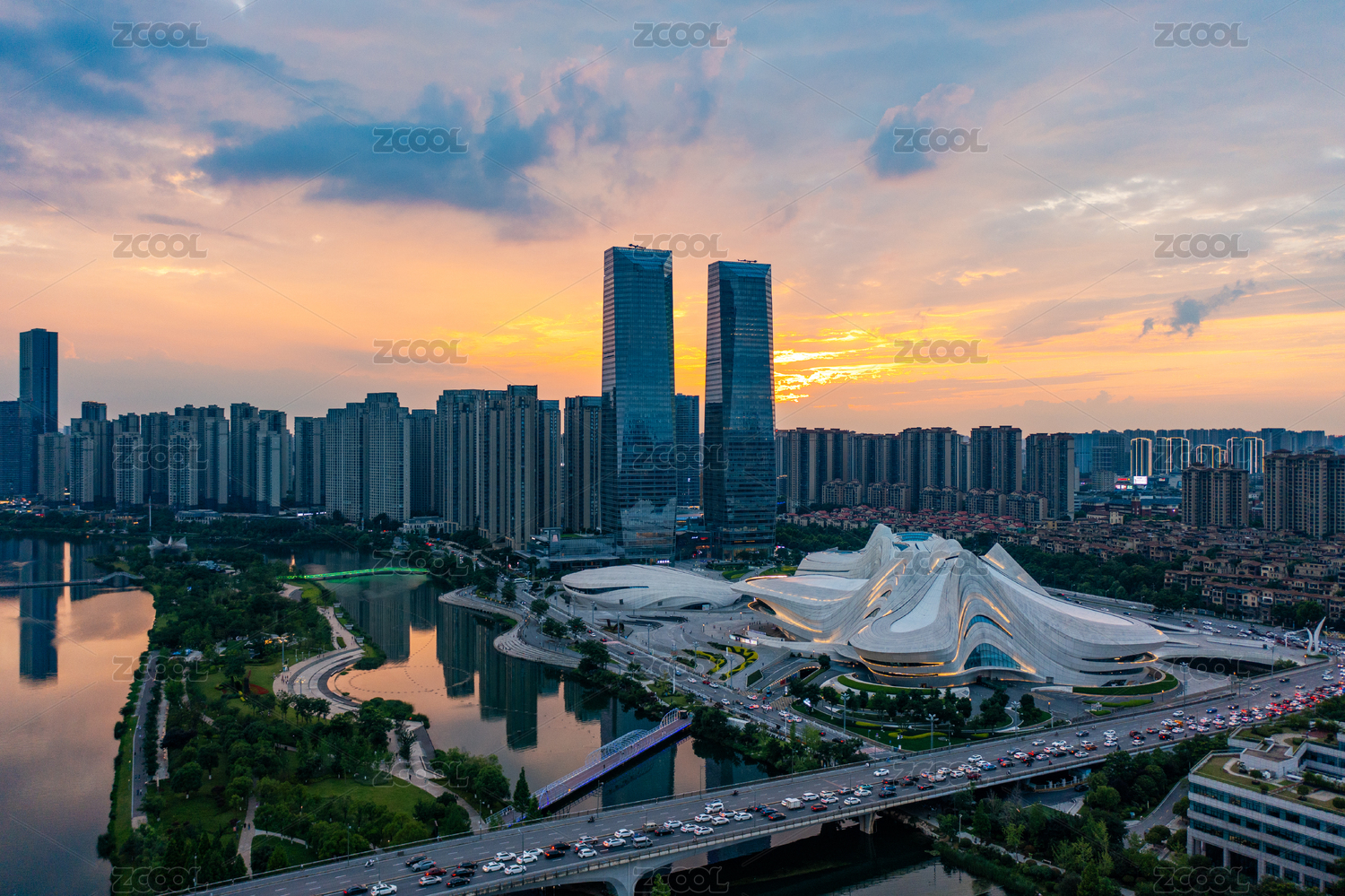 黄昏,晚霞,夕阳,梅溪湖,长沙,夜景,航拍,星城,梅溪湖大剧院,城市岛
