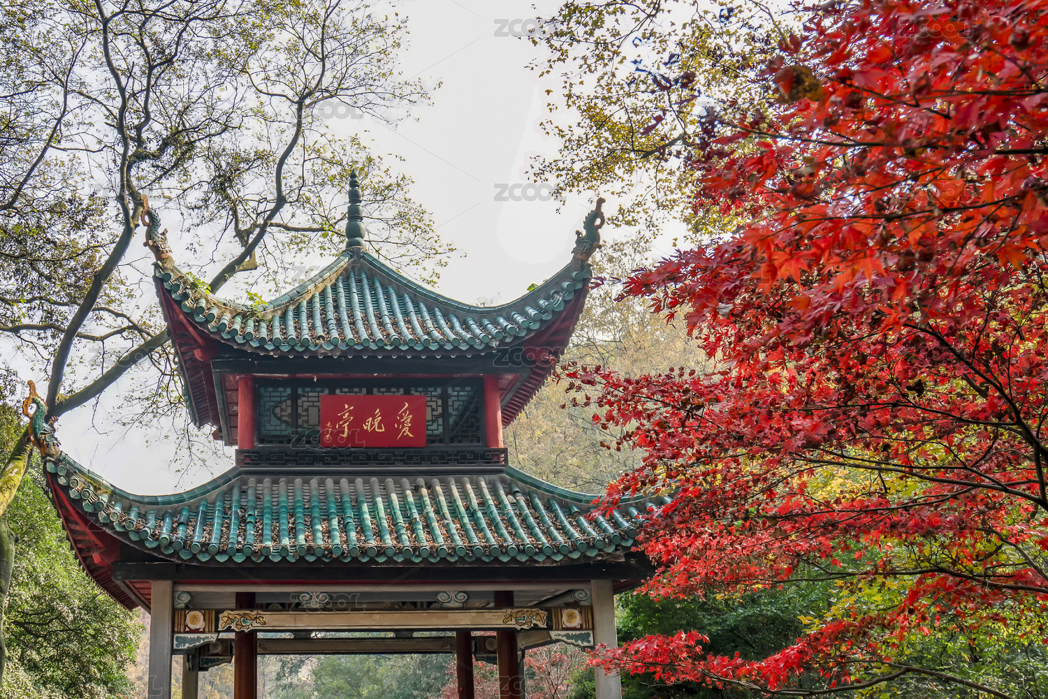长沙岳麓山风景区爱晚亭冬日红叶