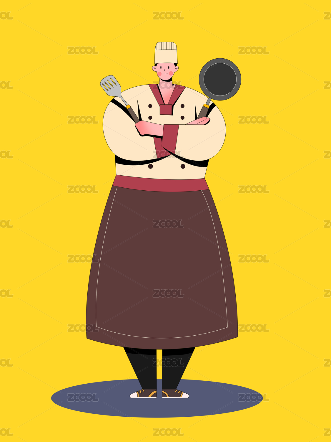 双手交叉在胸前拿着汤烧的男厨师职业插画