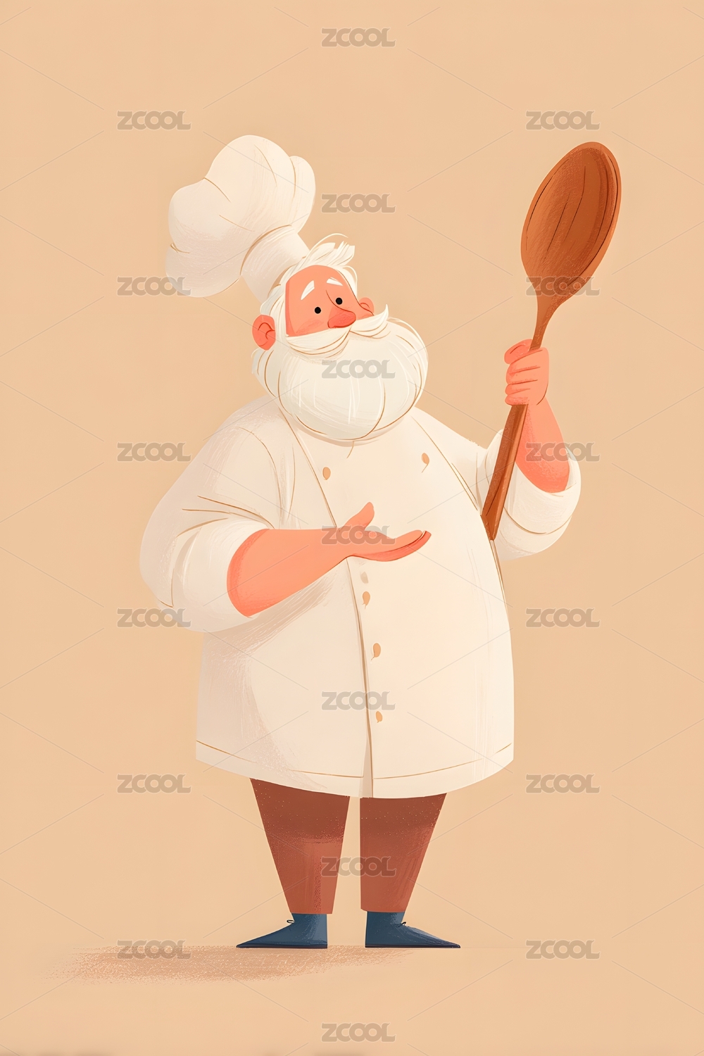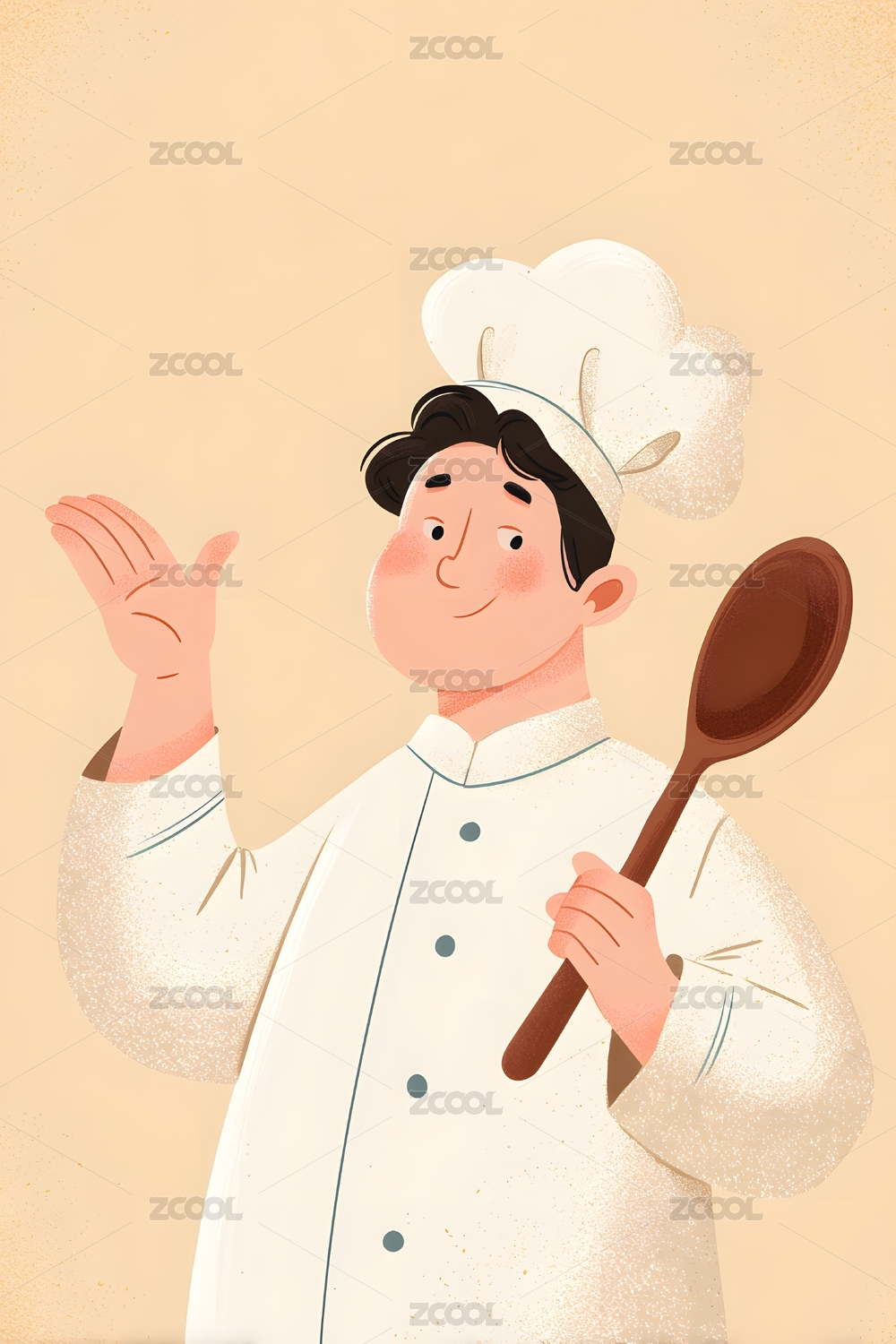 穿着厨师制服的男人拿着勺子元素插画