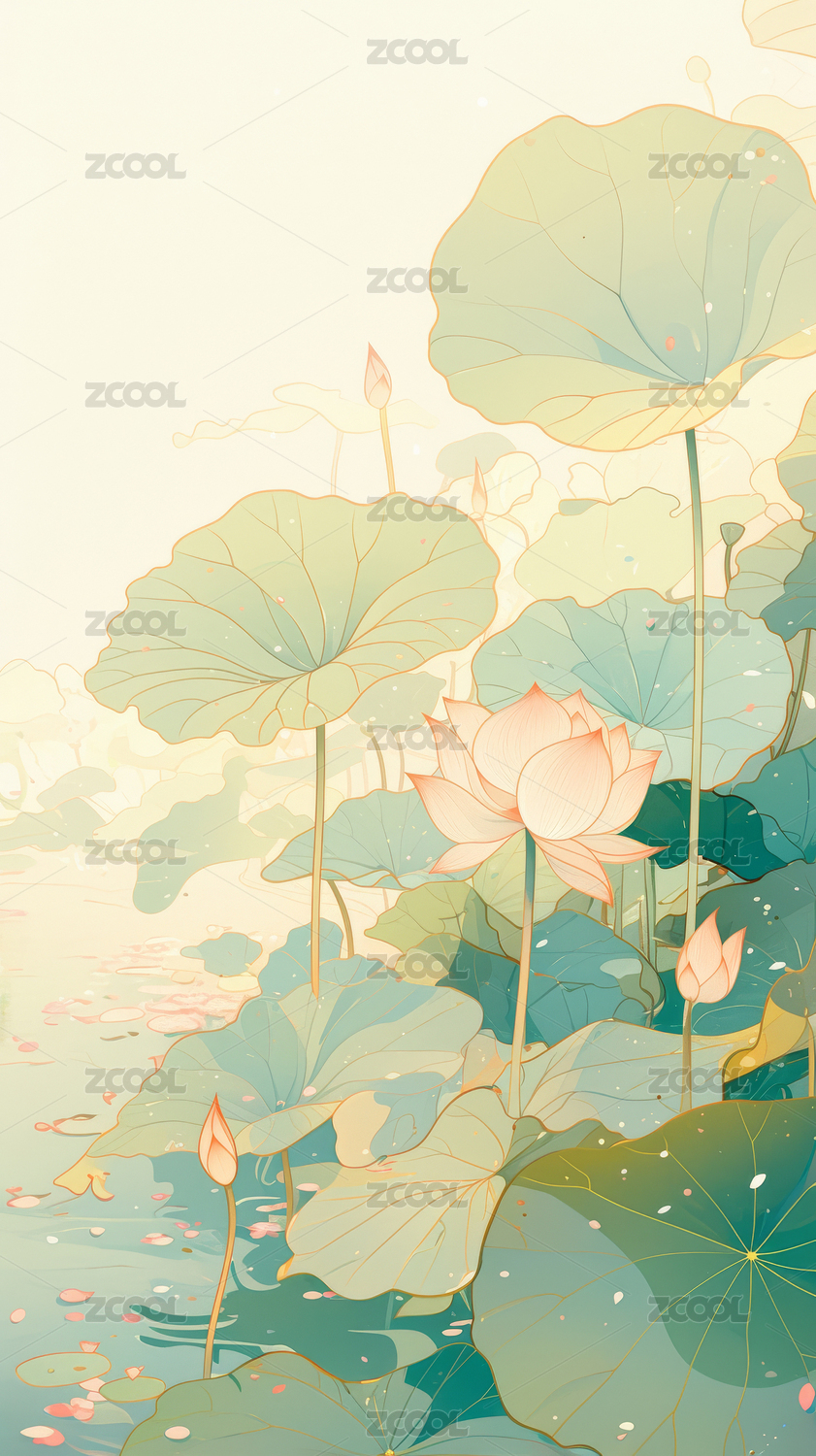 插画,水墨,水彩,淡雅,国风,国潮,西瓜,荷花,荷叶,夏天