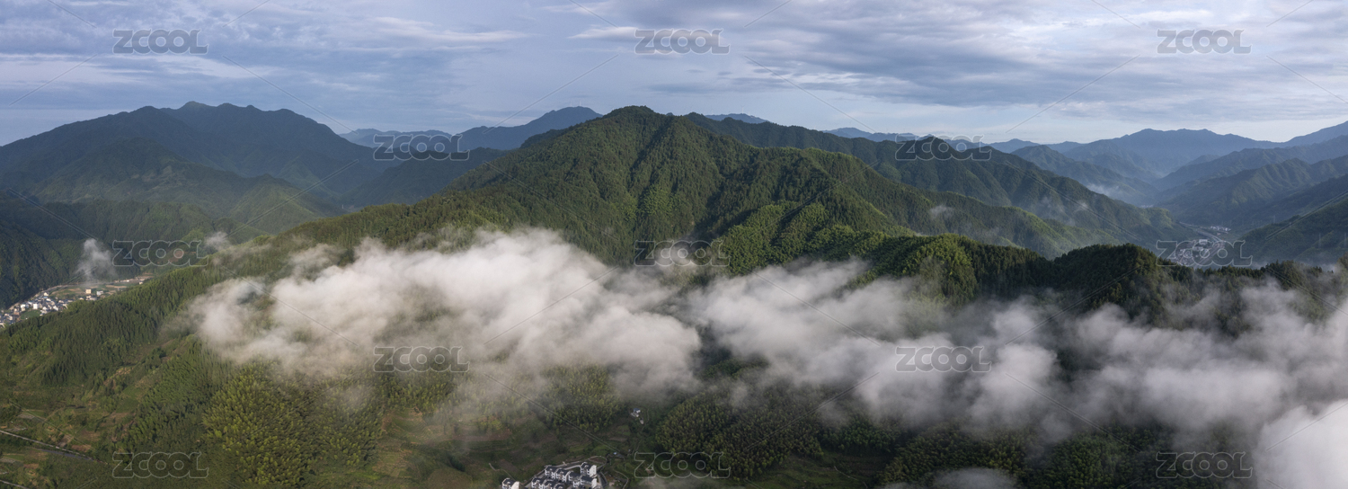 宁波宁海西店中国城镇乡村春天雨后云海航拍