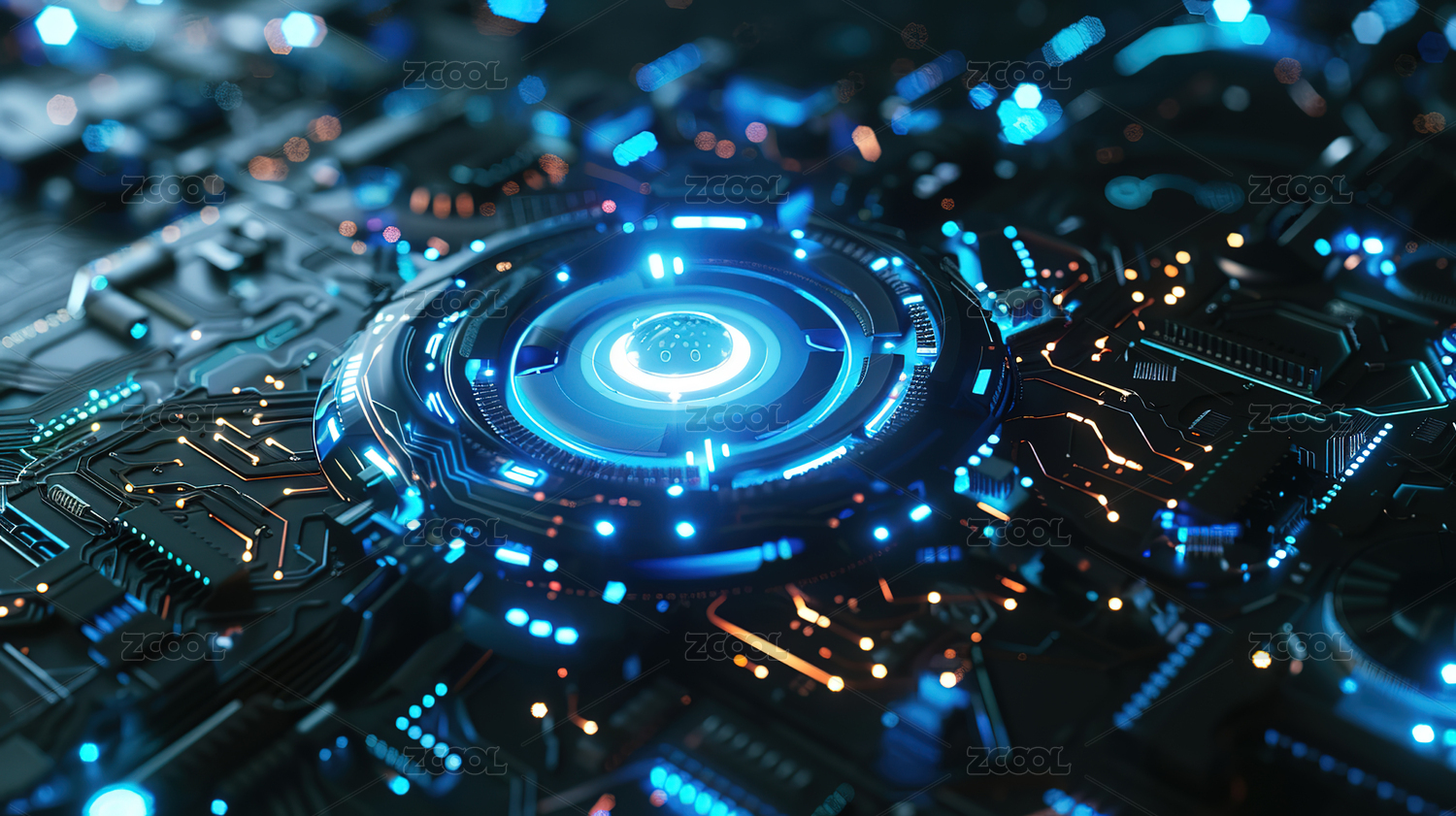 蓝色科技粒子芯片科幻概念背景