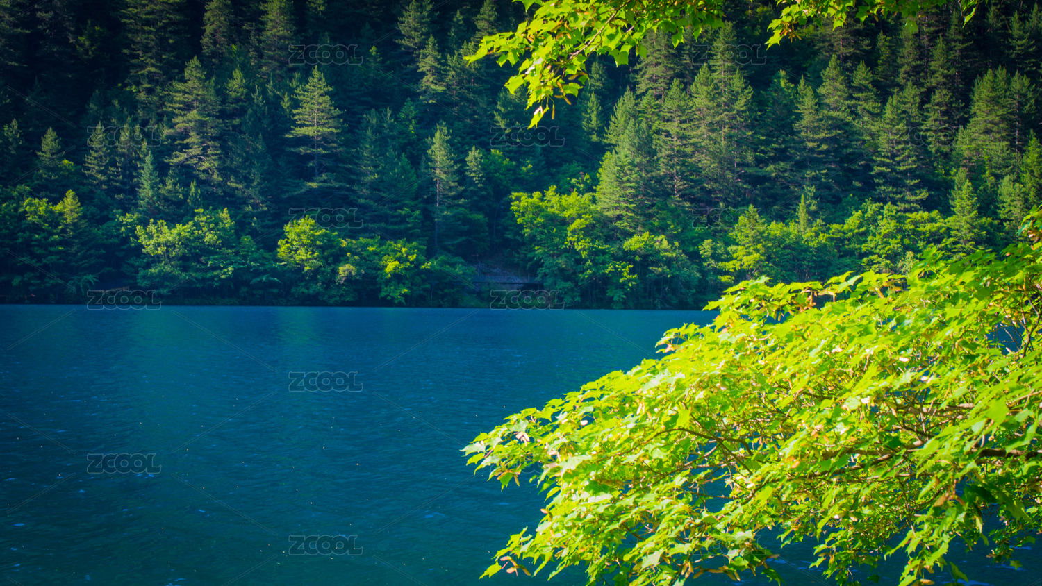 九寨沟风景区老虎海秋季彩林山水自然风光