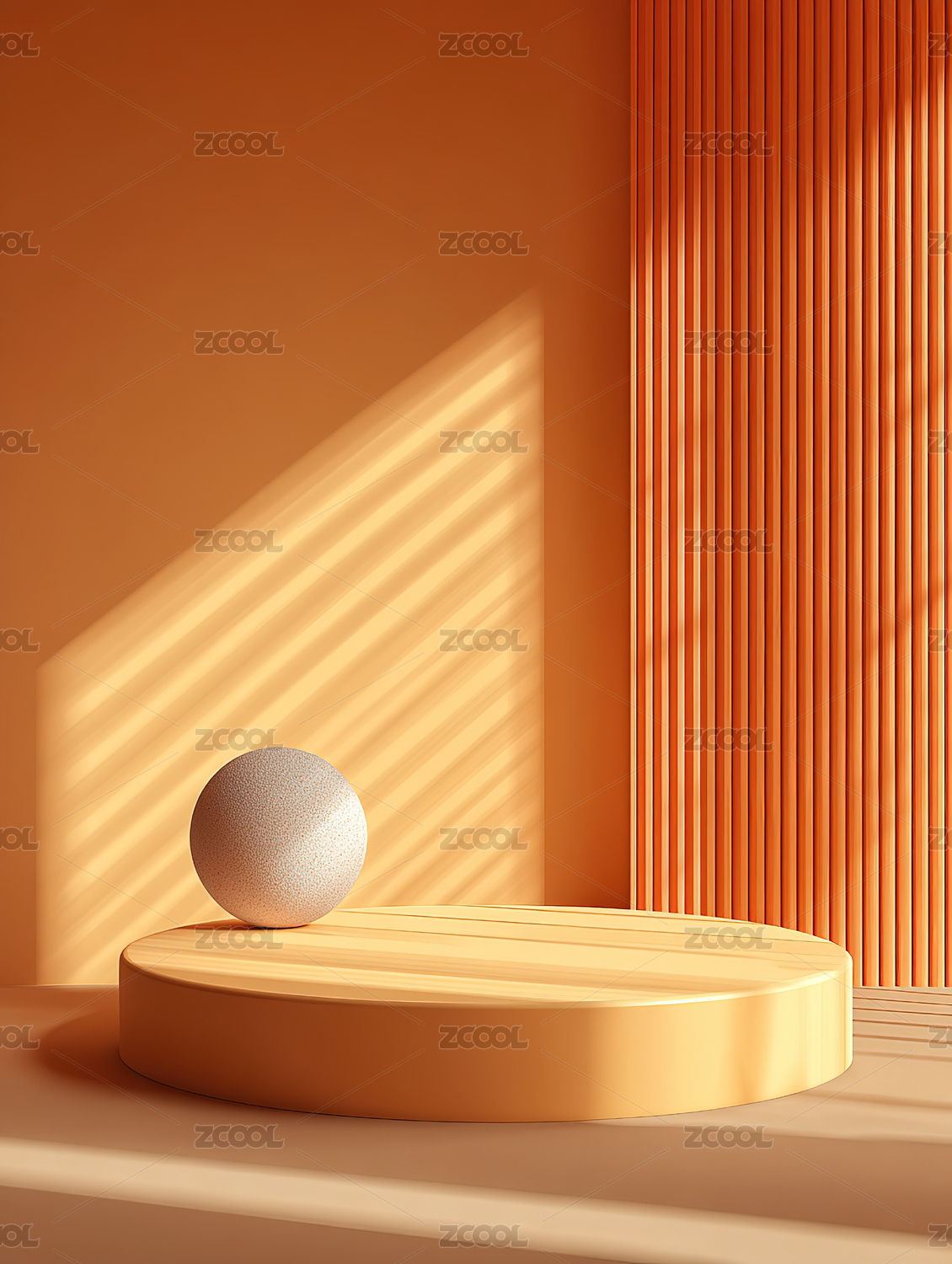 橙色空间中的白色圆台与小球