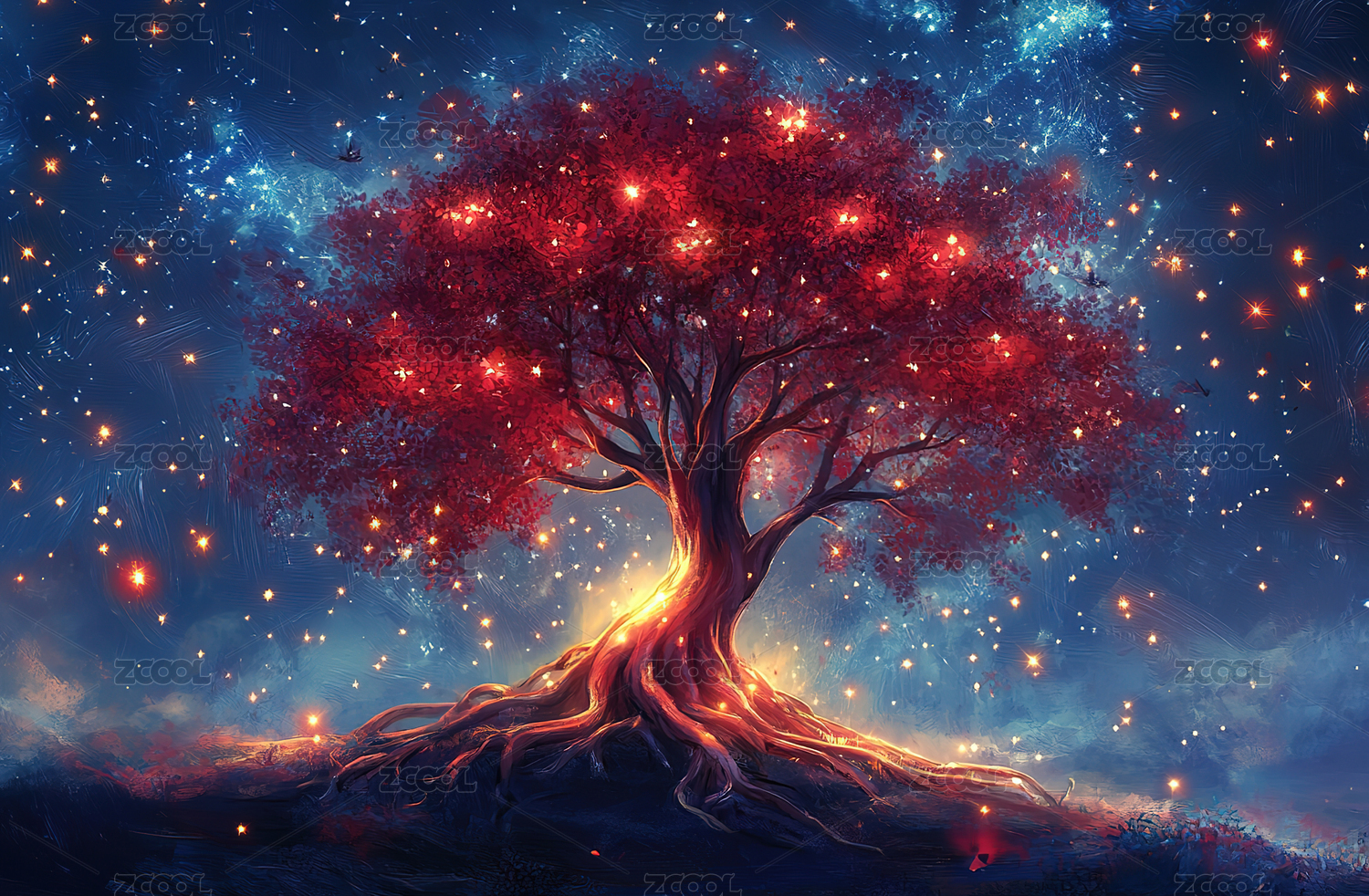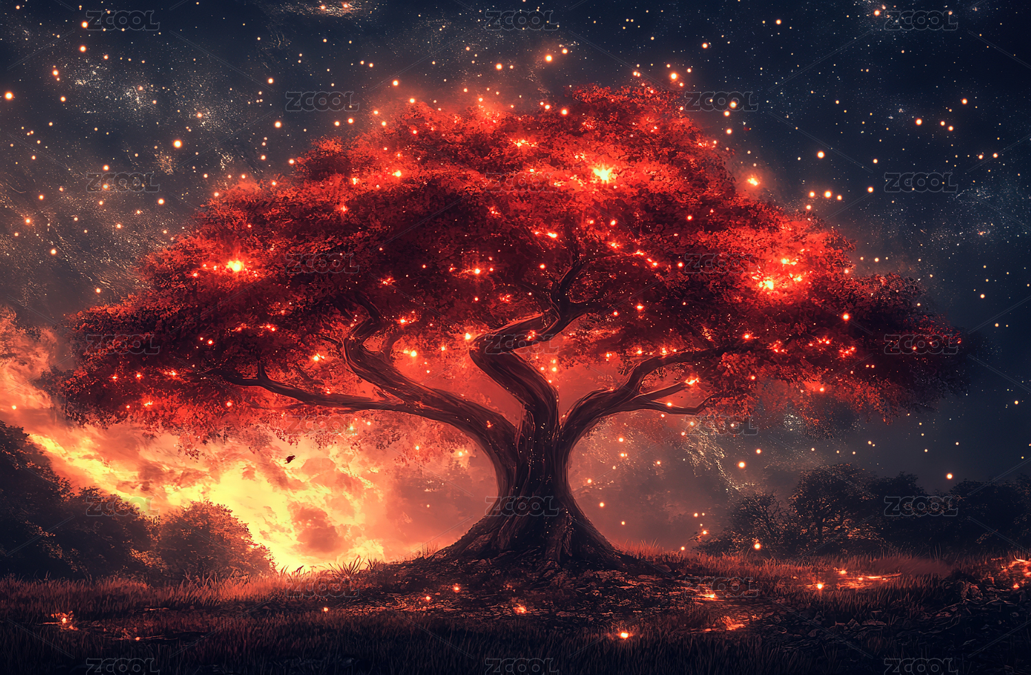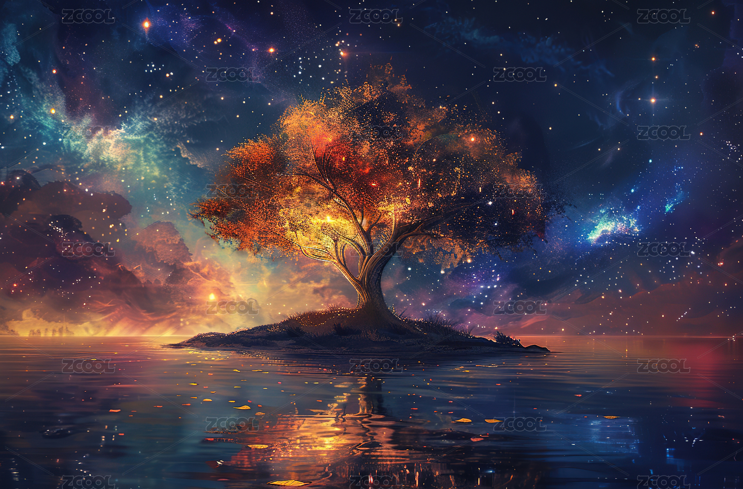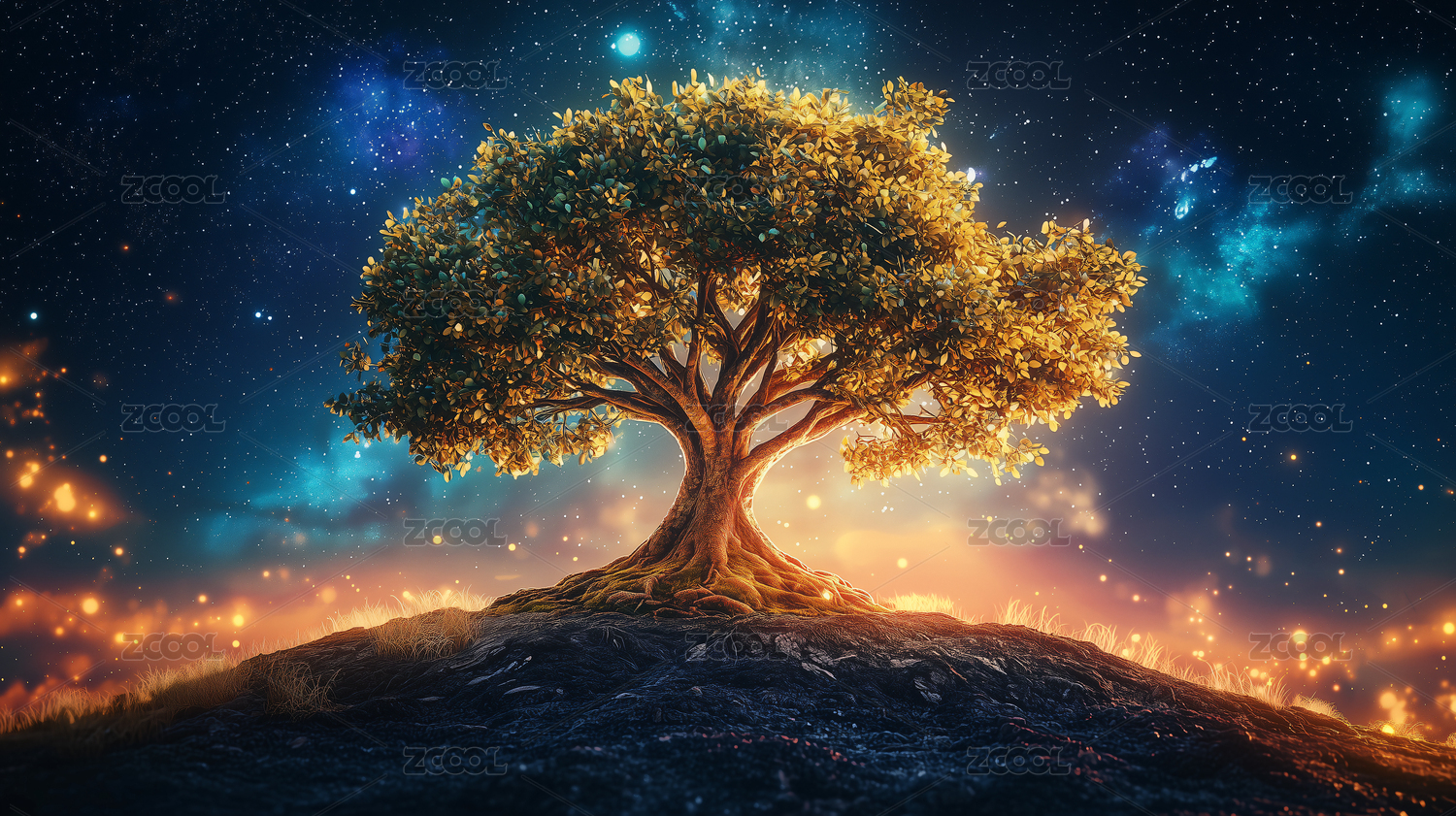 奇幻树梦幻感星空场景