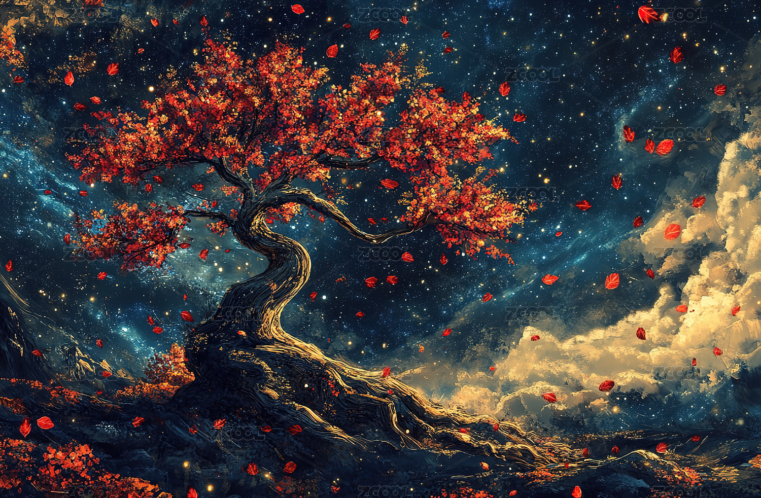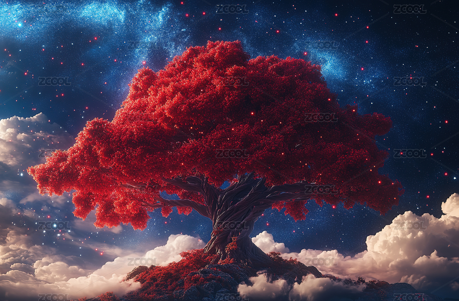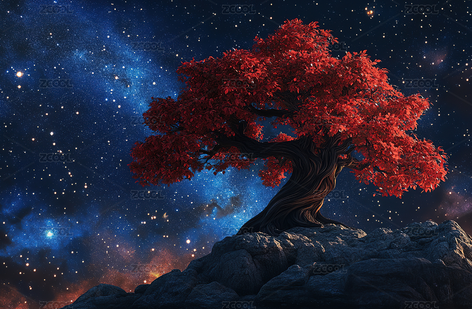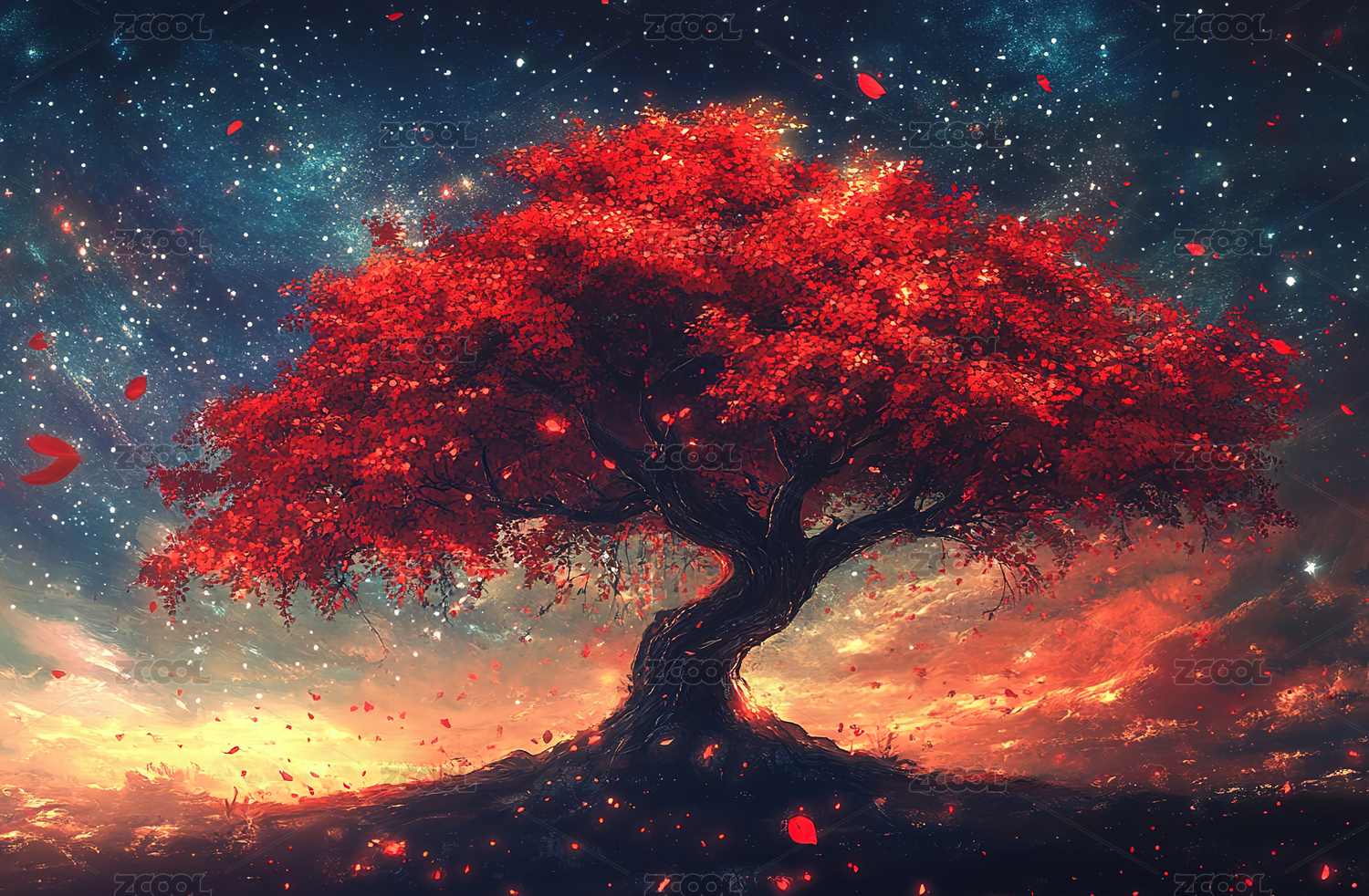 奇幻树梦幻感星空场景