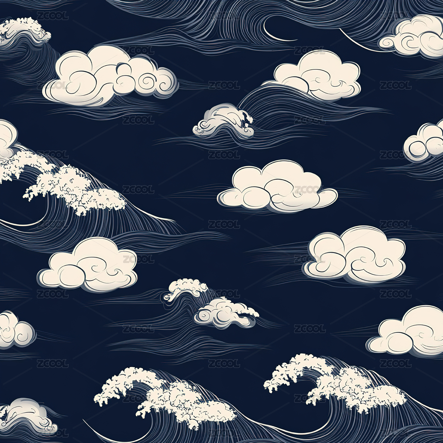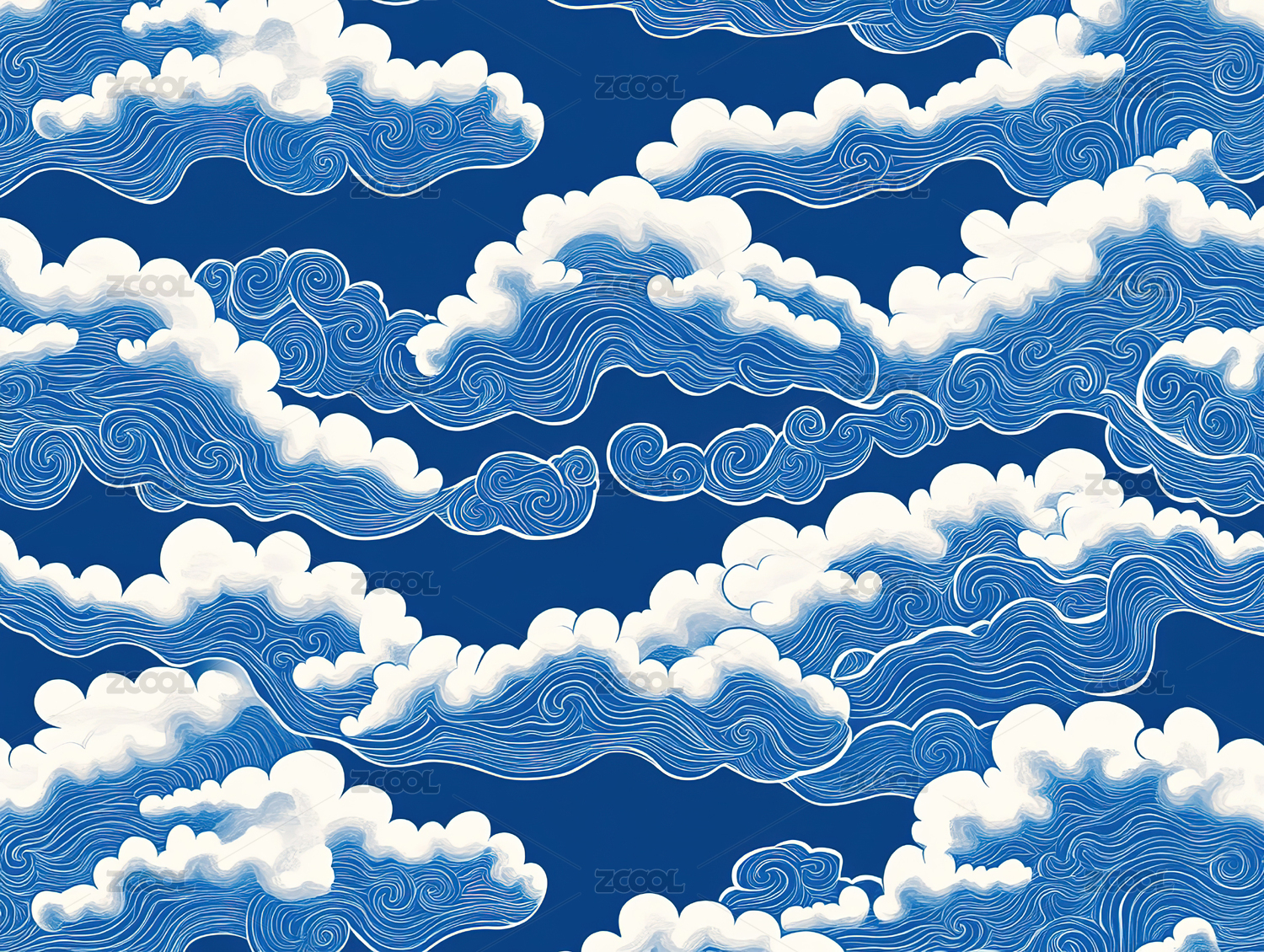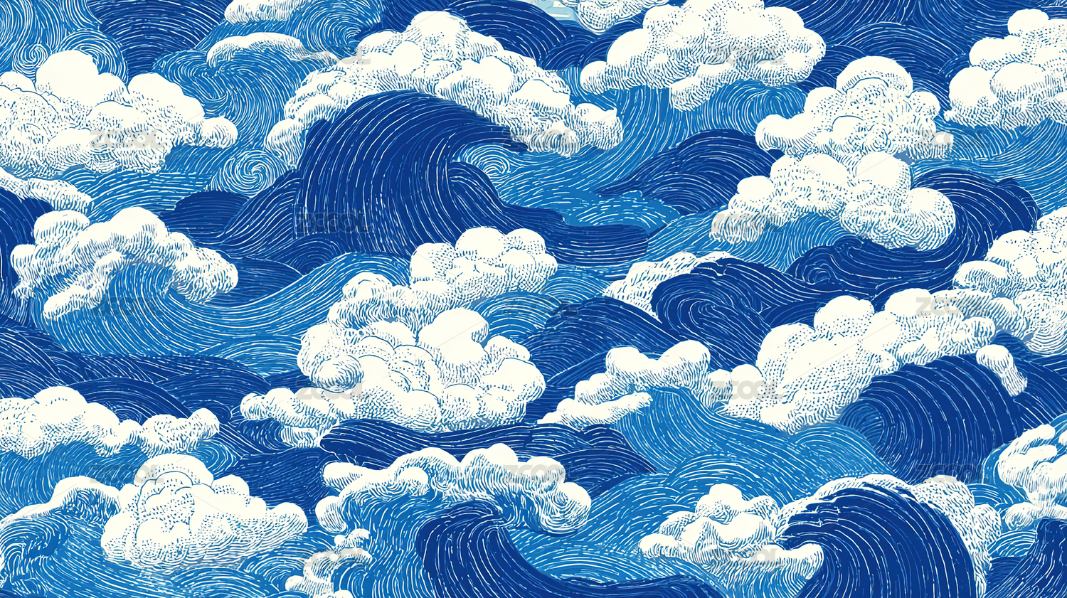 蓝色波浪与白云图案