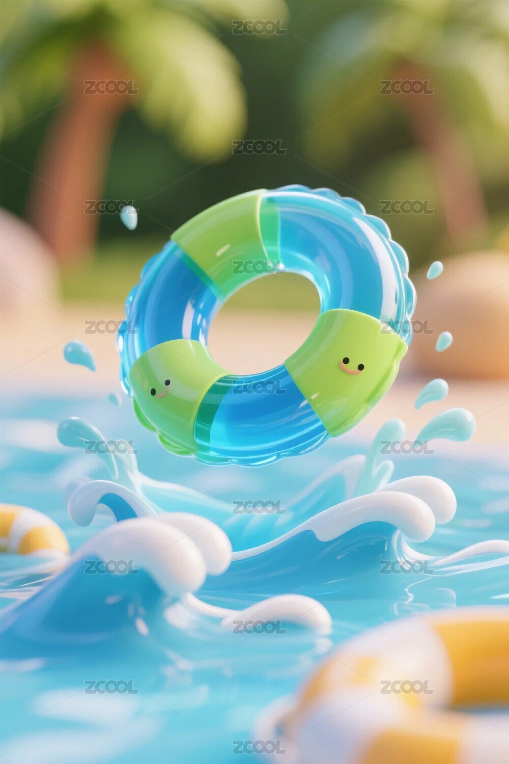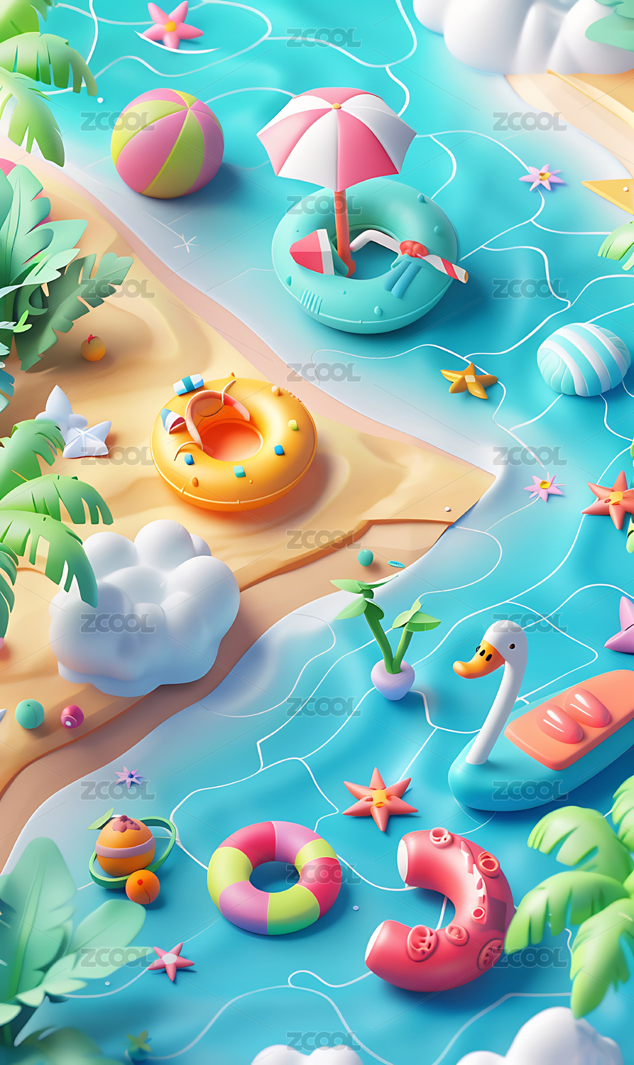 游泳池,海星,夏天,度假,卡通,设计,概念,装饰,三维图形,可爱的