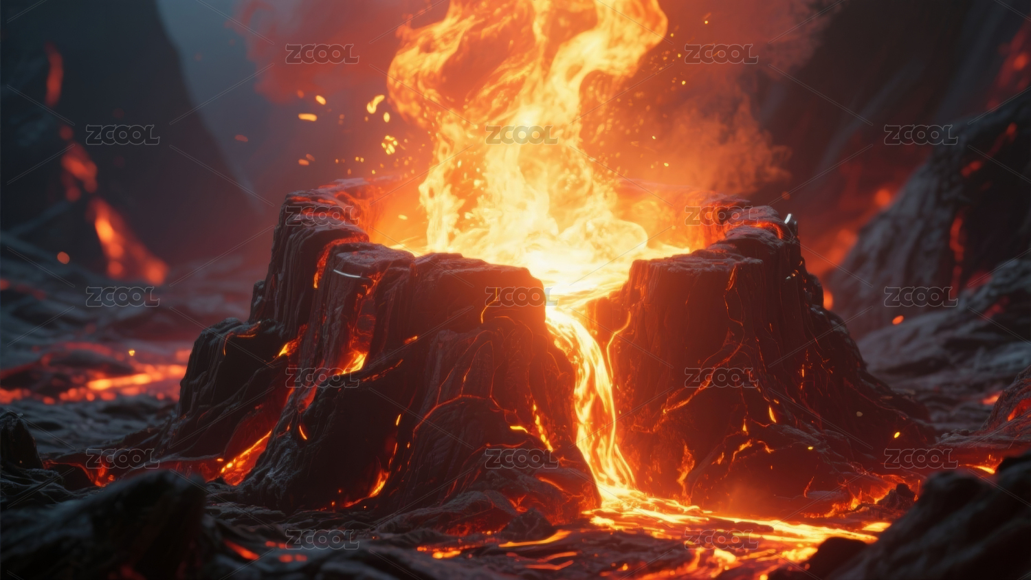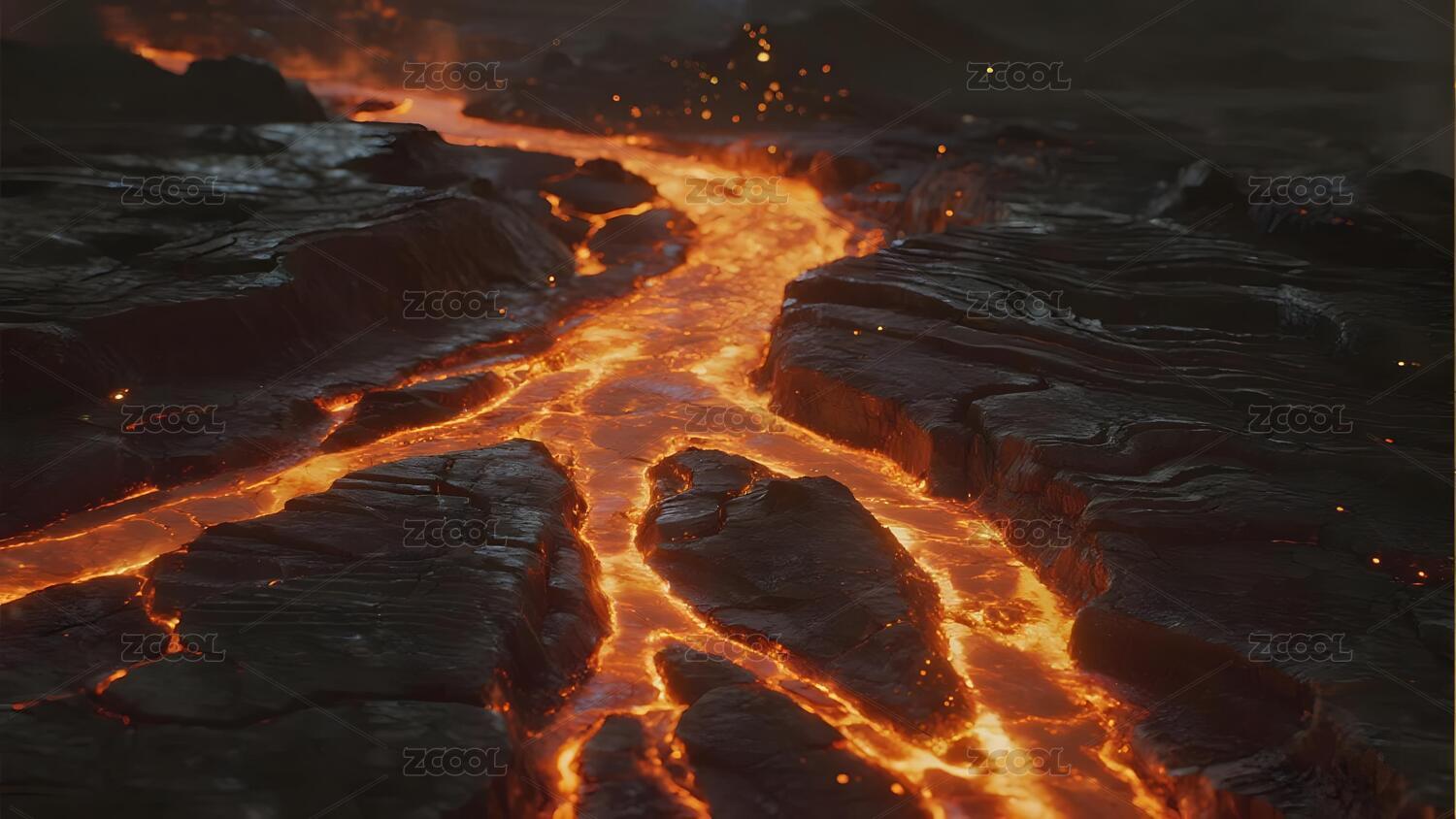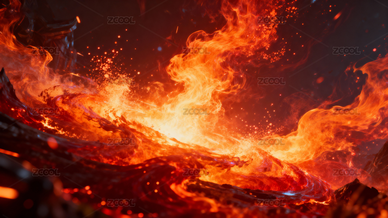 夜晚,天空,橙色,火山,熔岩,喷发,火焰,红色,山峰,自然