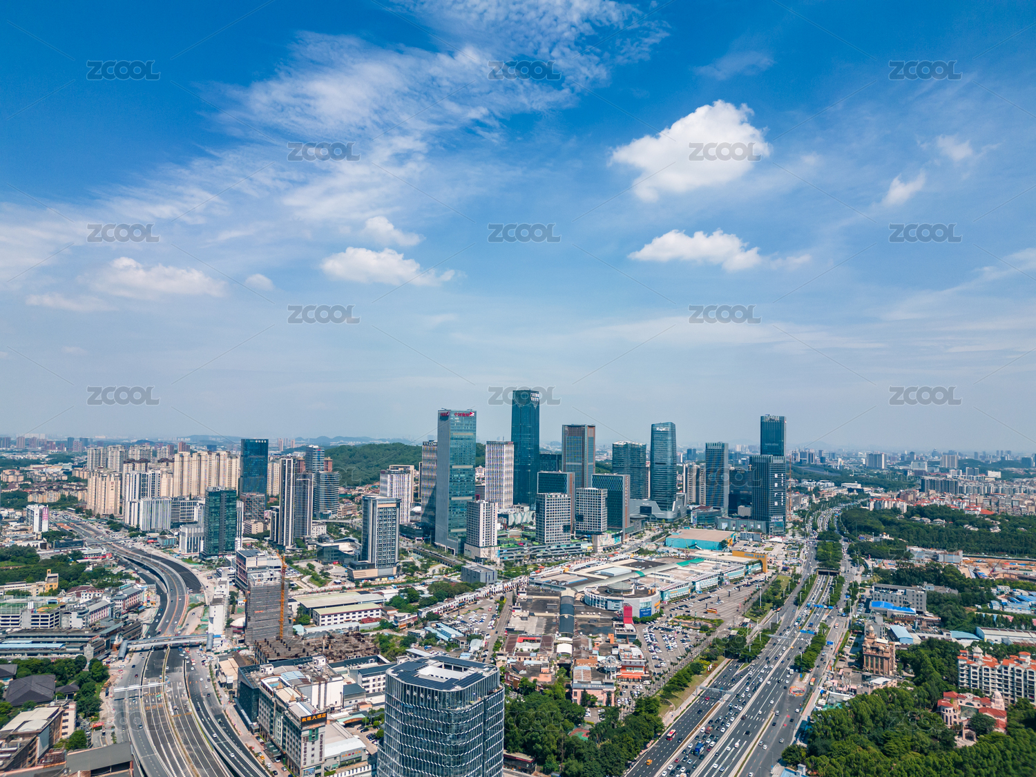 江门蓬江区万达广场建筑蓝天航拍拍摄