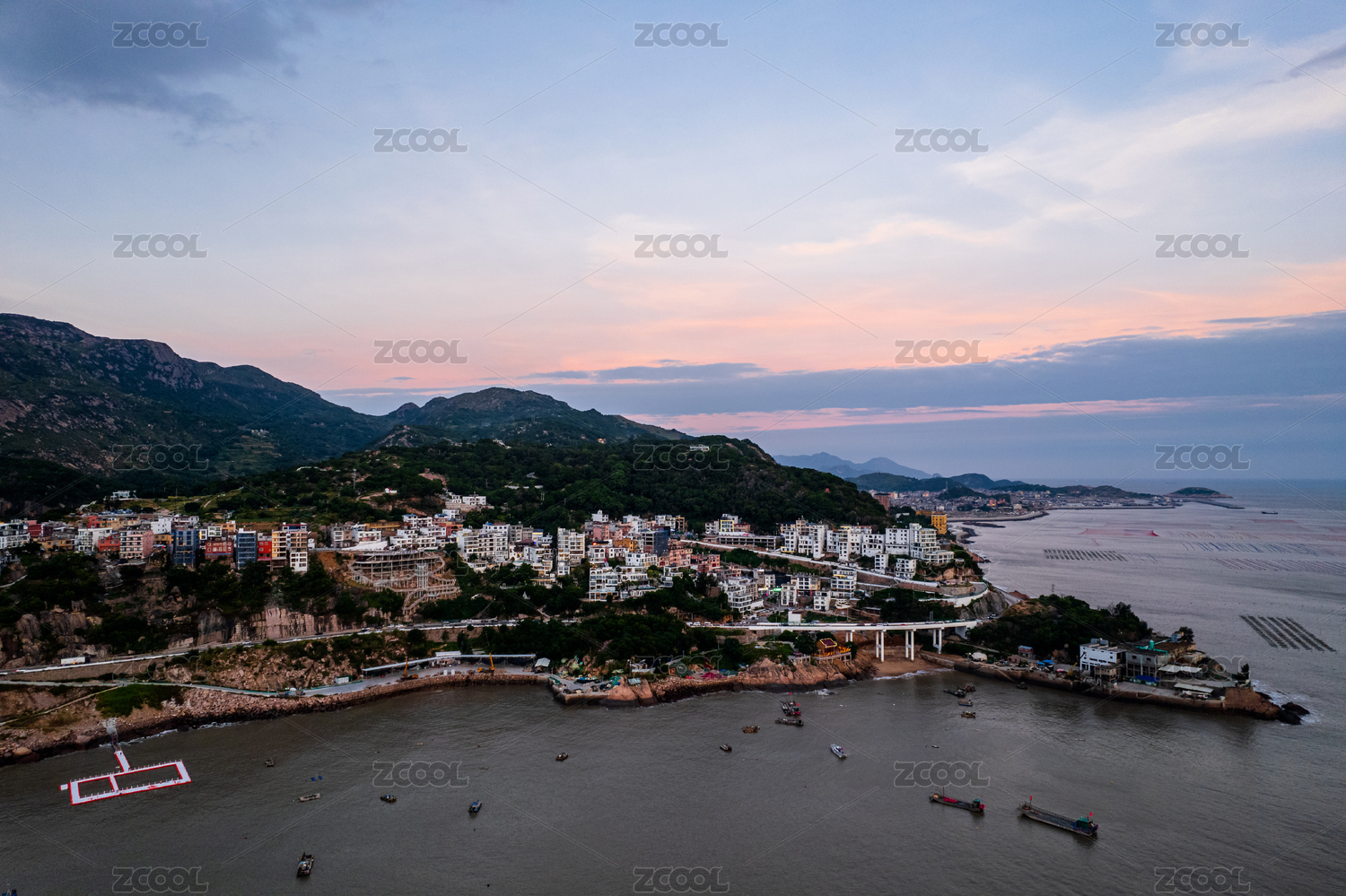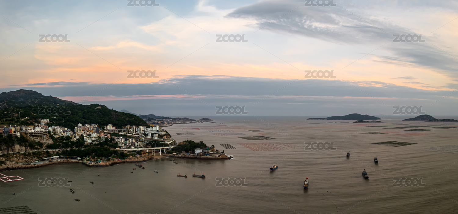 福建霞浦沿海日出海岛城镇日出风光