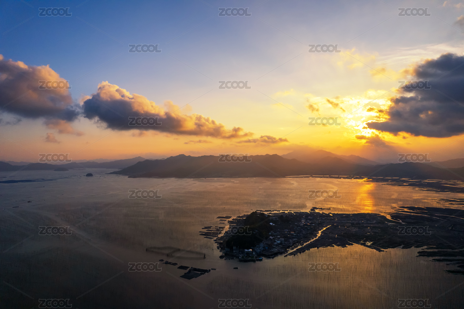 山,岛,日落,晚霞,日出,朝霞,大海,滩涂,海上种植,天空