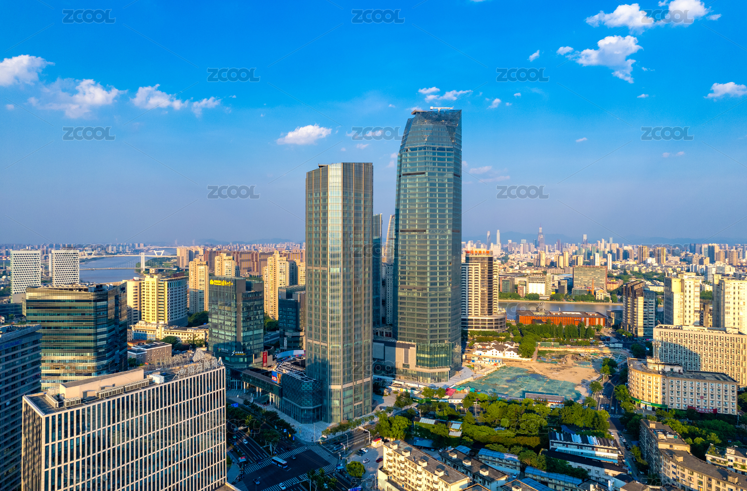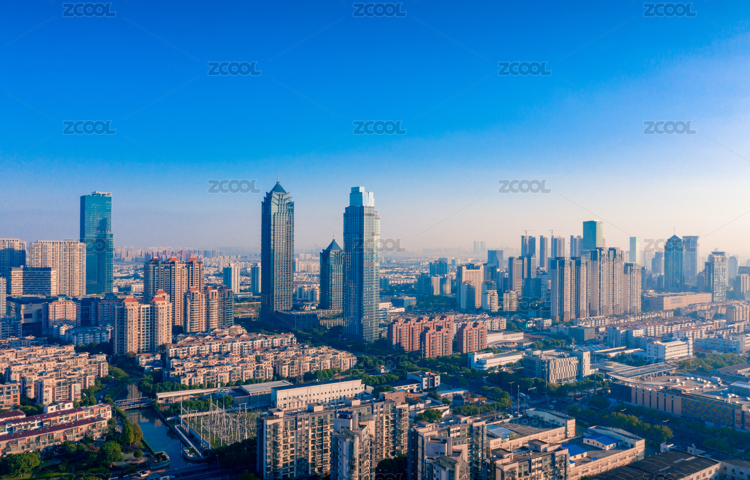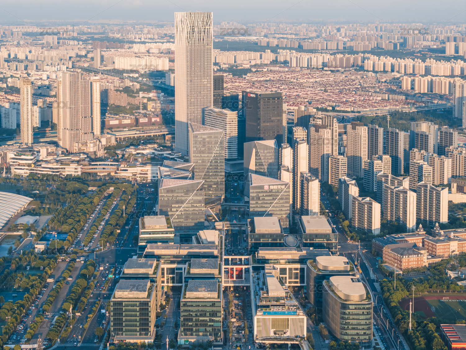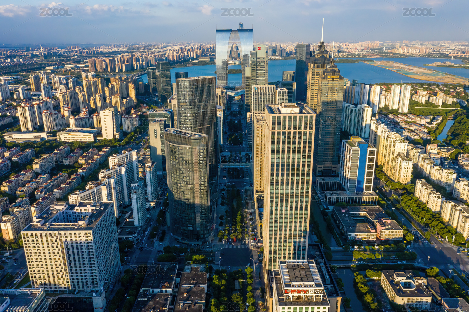 航拍中国江苏苏州工业园区湖西CBD高层建筑群