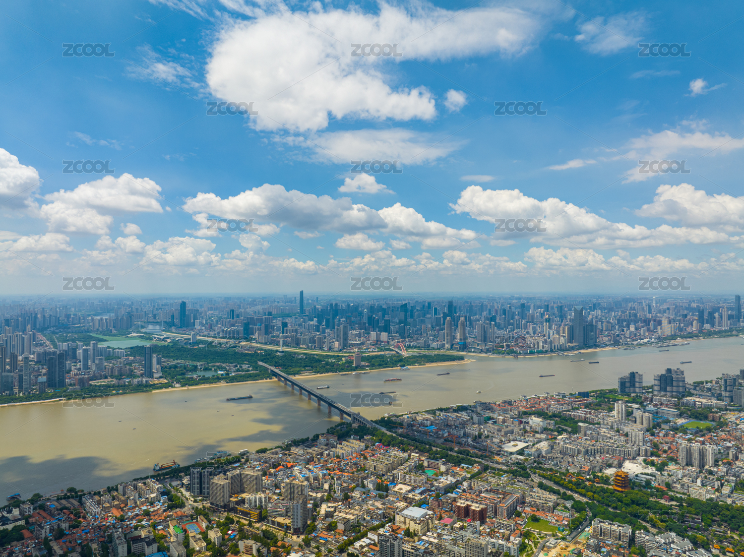 湖北武汉主城区长江两岸城市风光
