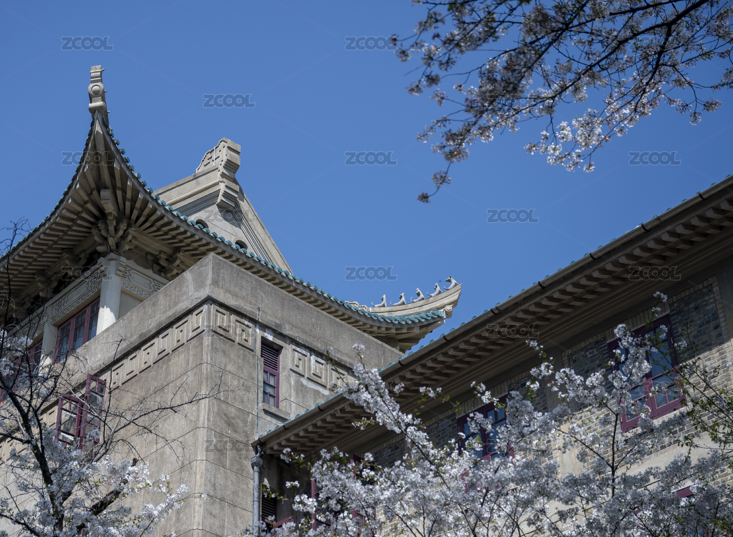 武汉大学老斋舍,樱花烂漫映照飞檐翘角