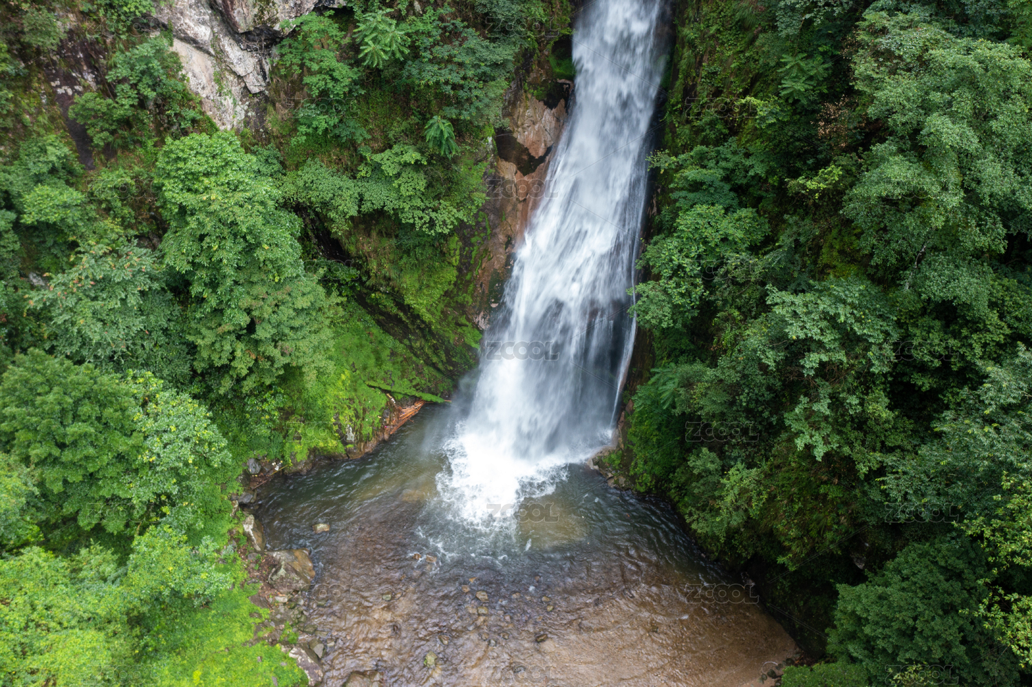 中国贵州贵定腊利绿意盎然的自然瀑布
