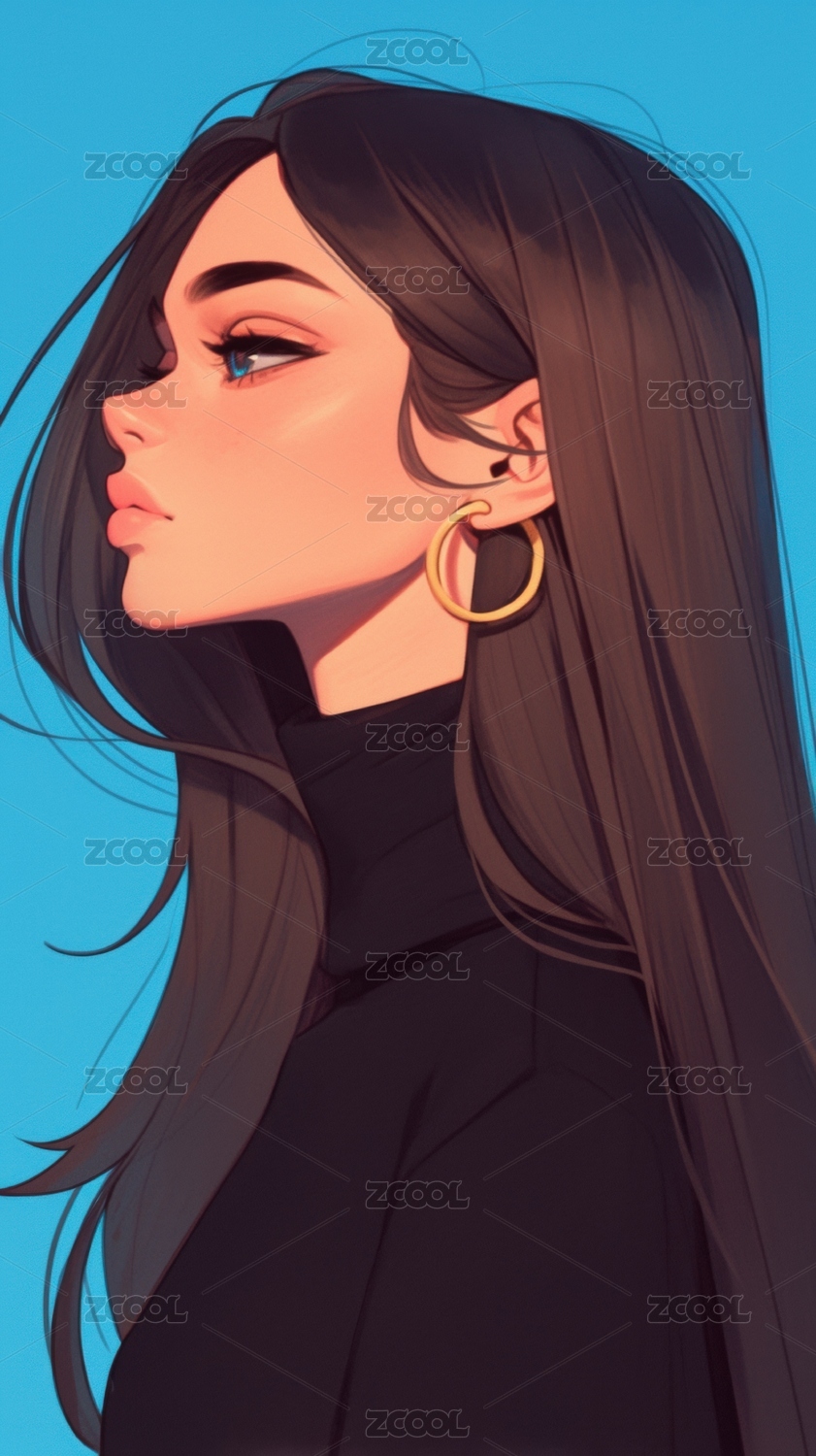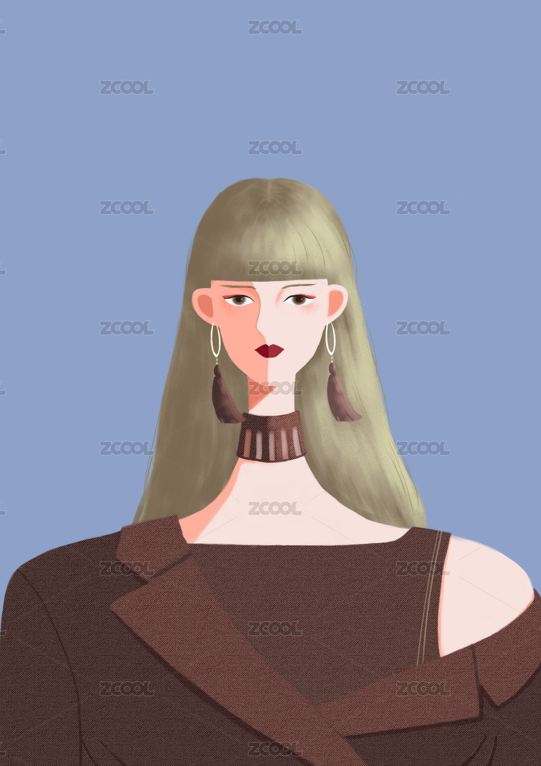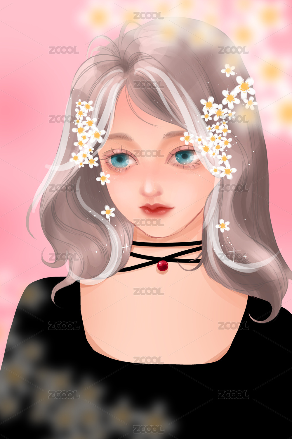 粉黑少女时尚肖像大头照矢量扁平化设计背景