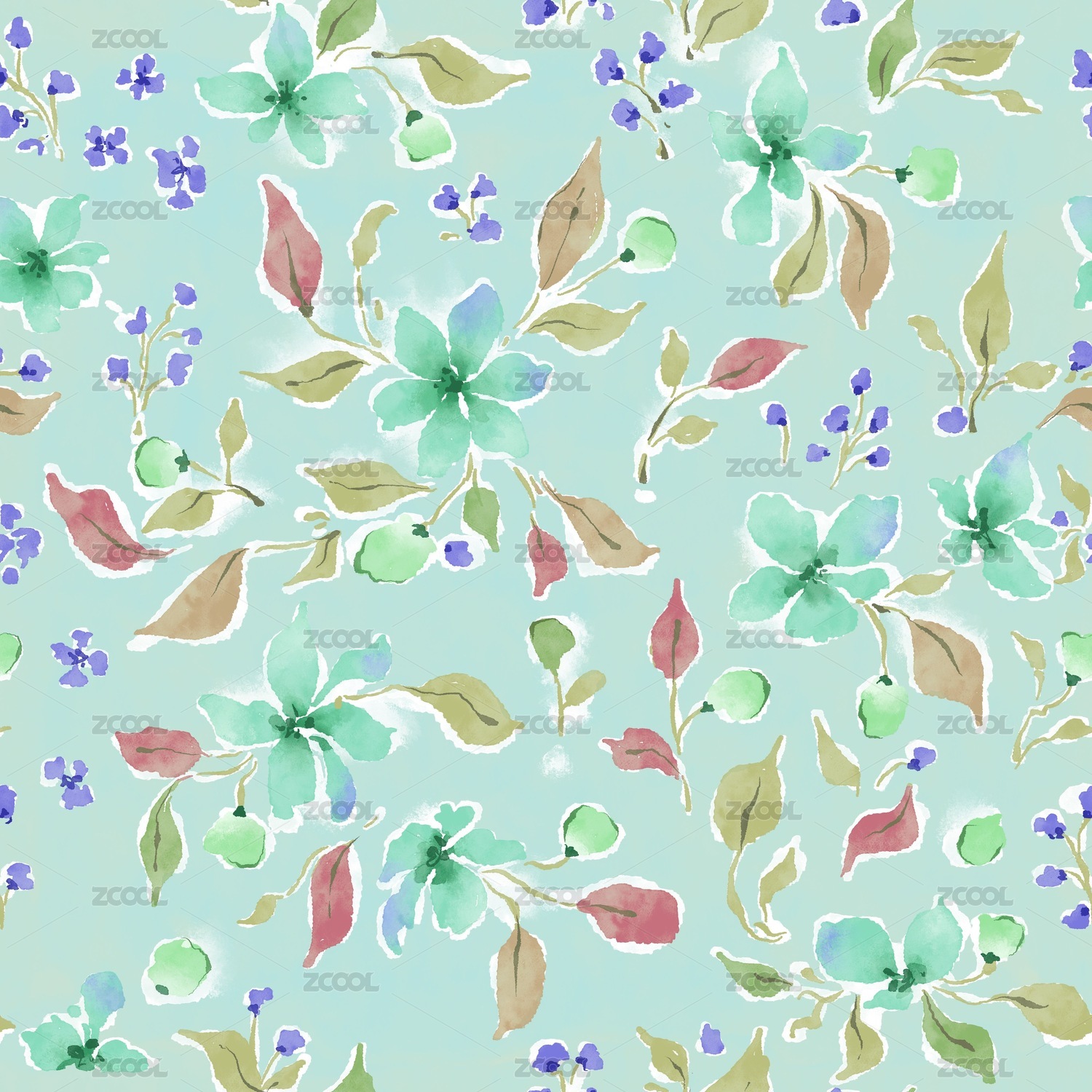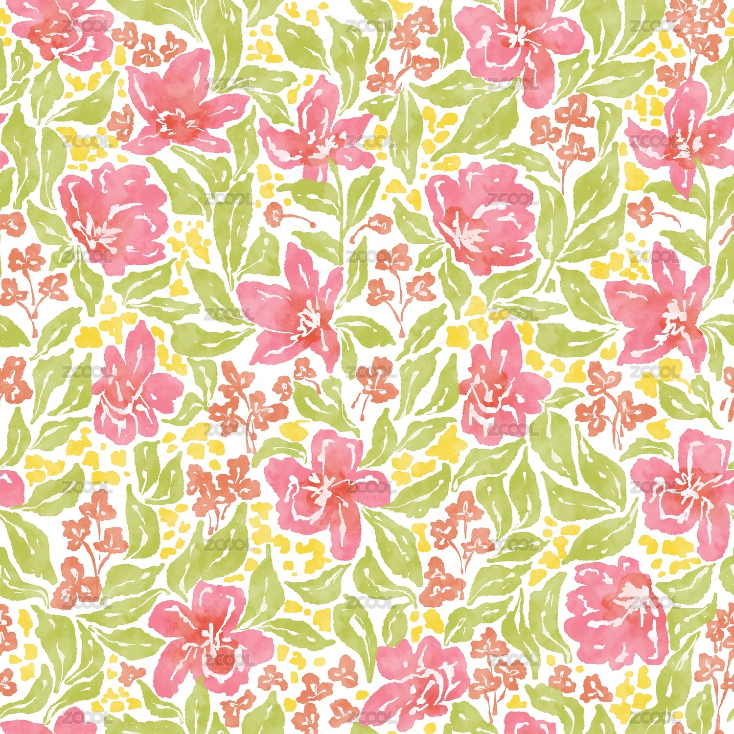 水彩花卉四方连续无缝图案