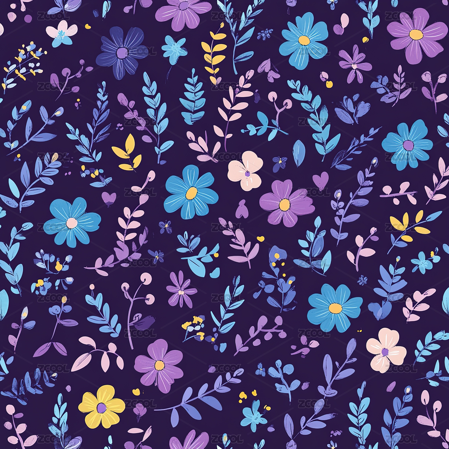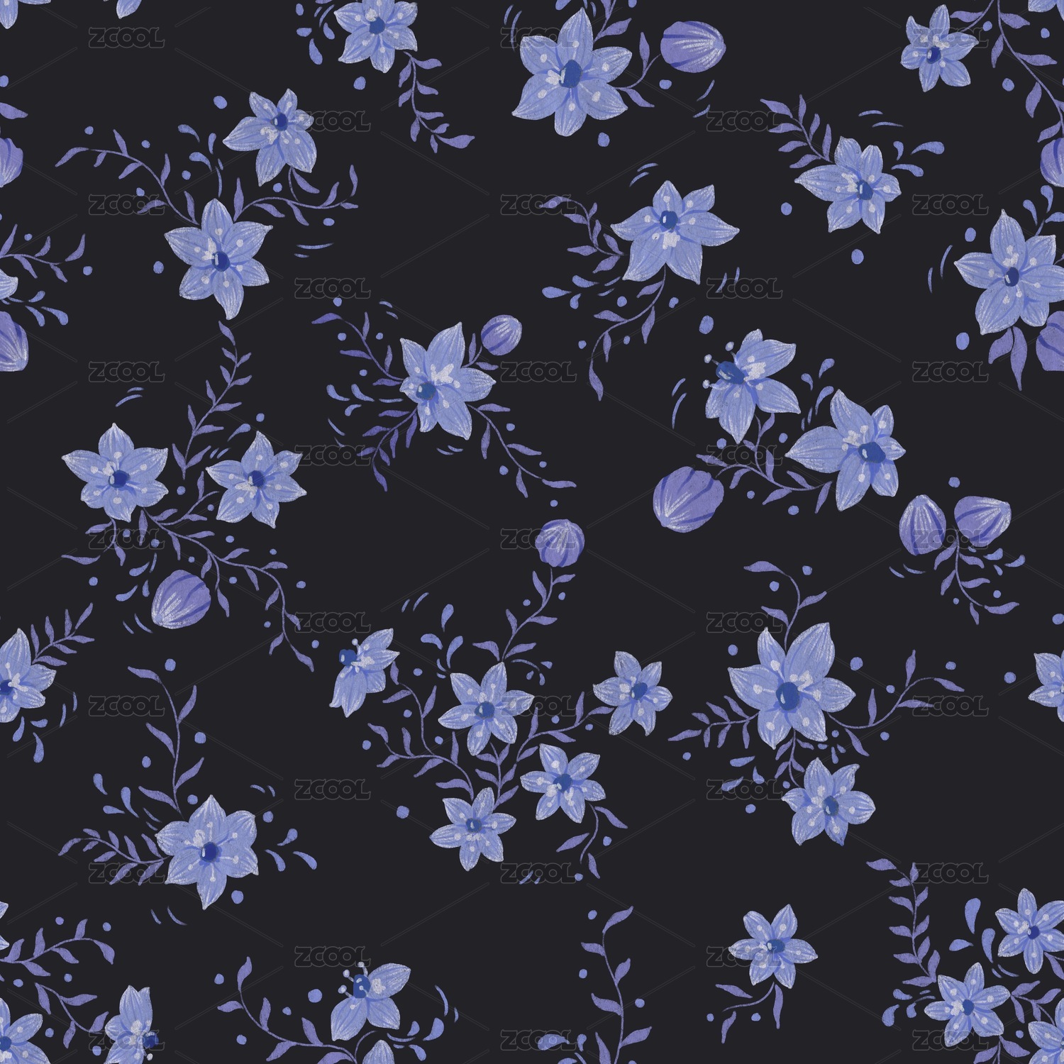 深色背景小碎花四方连续无缝图案